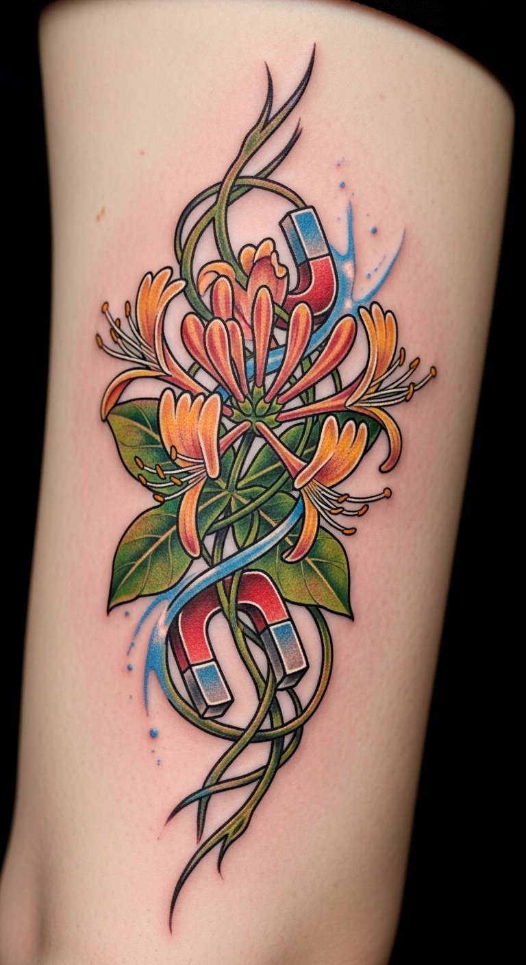 It draws affection. Vines pull in positivity. Write ideas down. Bold this: honeysuckle as love magnet. Use magnets for fun tests. Place on heart area. Look for love deals. It attracts. Keep it inviting. Add hearts. This design pulls. Craft with strings. Simple play. Make it magnetic.