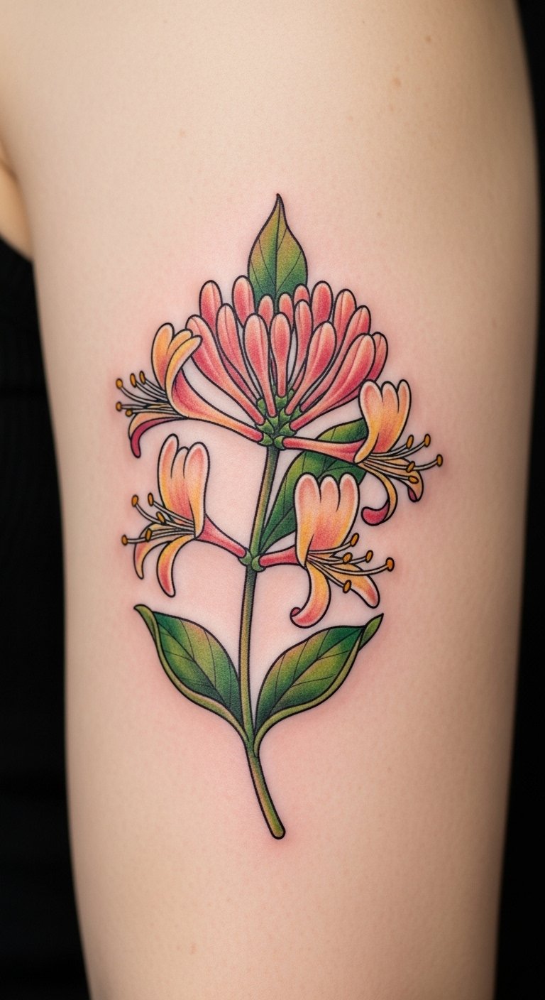 Realism makes it pop. Mimic real flowers. Study photos closely. Bold this: realistic honeysuckle. Use reference images. Place on arm. Look for detail pros. It looks alive. Keep details sharp. Add drops. This idea fools eyes. Practice shading. Artistic build. Make it vivid.