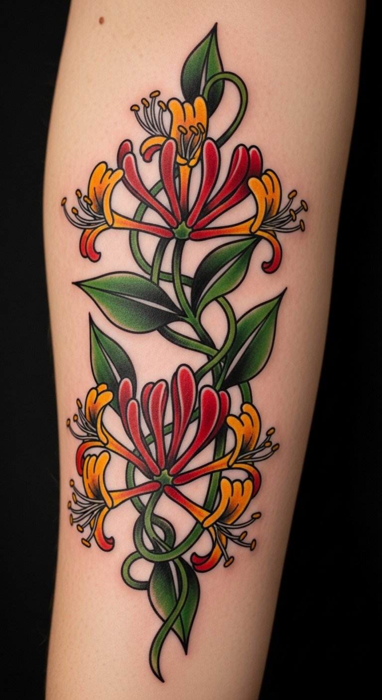 Old-school vibes rule. Use thick lines. Draw in black. Bold this: traditional honeysuckle. Employ old pens. Place on bicep. Seek classic shops. It endures. Keep it simple. Mix with patterns. This idea roots. Ink on paper. Heritage feel. Make it iconic.