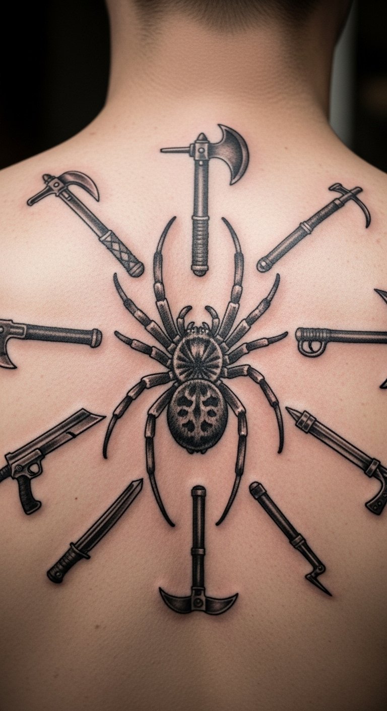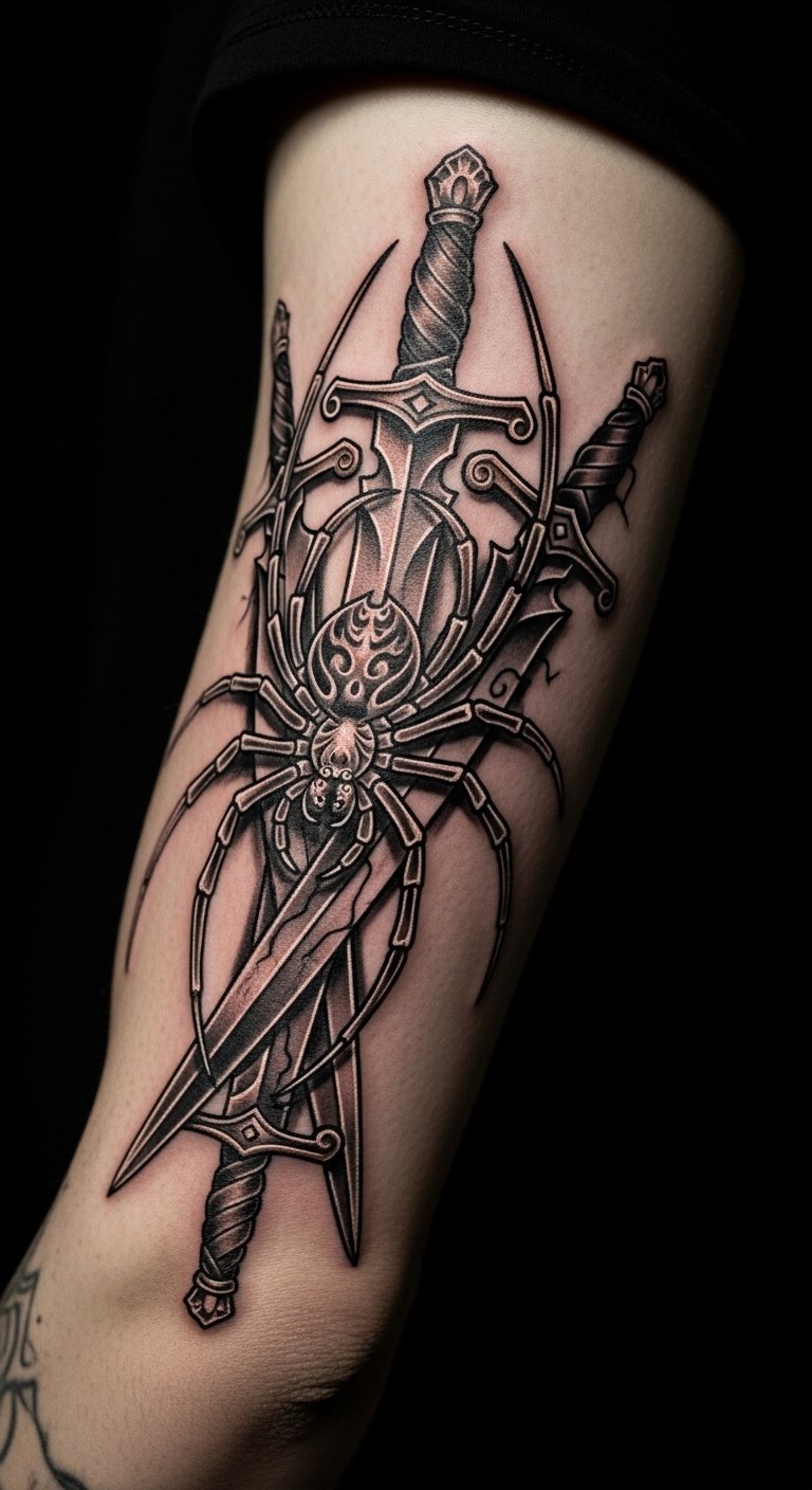 Blend Nobunaga’s sword with the spider. Sketch swords at home for free. Add them to the design easily. Place on your bicep for strength. Expect $80 at a shop. Use online templates as guides. This tattoo mixes action and symbol. Try paper cutouts first. It’s budget-friendly fun. Share designs with online groups. You’ll capture his spirit perfectly.