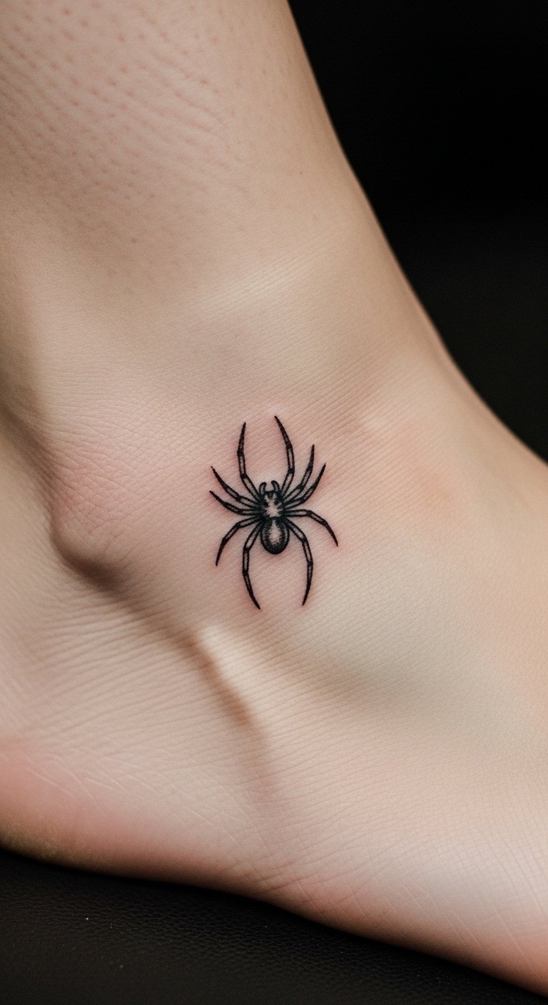 Go minimal with this. Tiny spider quick. Use a pen. Ankle hideaway. Just $40. Outline simple. This tattoo stays subtle. Place it fast. It’s neat. Try temporary. You’ll like the ease.