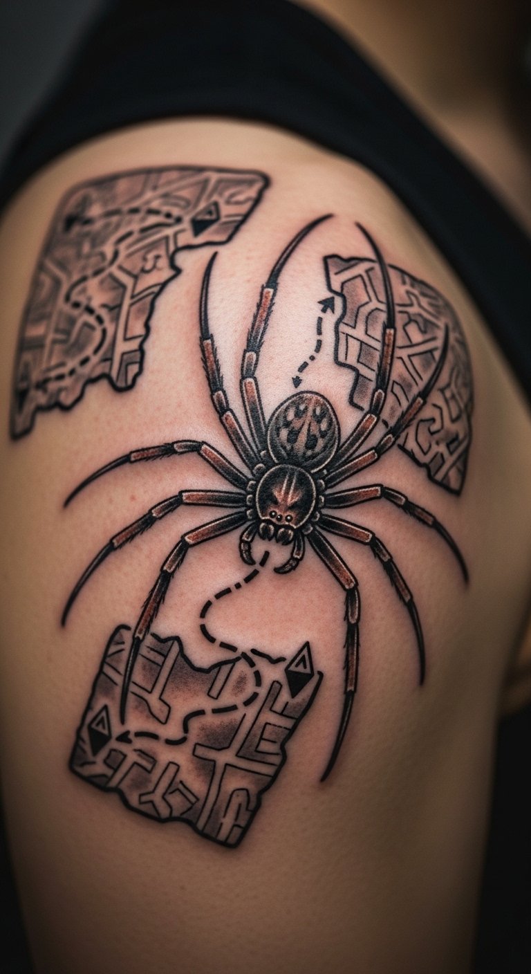 Solo journey paths. Path spider alone. Map it. Back trail. Sessions $75. Add paths. This tattoo journeys on. Keep solo. It’s inspiring. Plan your route. You’ll track your story.