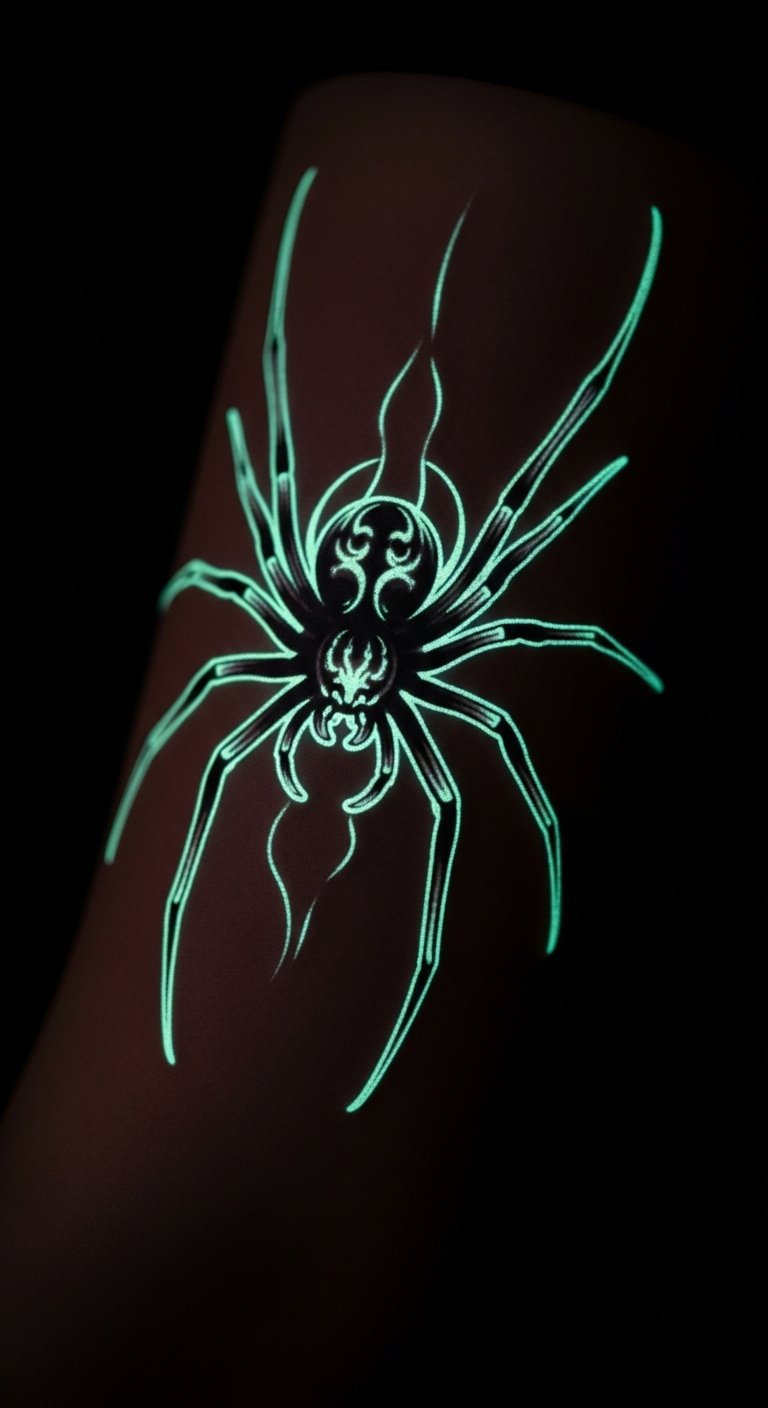 Neon glow effects. Glow with highlighters. Cheap. Arm glow. Pros add for $60. Fake glow first. This tattoo lights up. Add effects fun. It’s vibrant. Test at night. You’ll stand out.