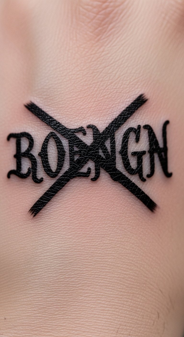 Write a word and cross it out. Choose something silly. Draw with a shaky hand on paper. Use temporary tattoos to preview. Buy supplies for under $25. Crossed lines show irony. Put on your finger for quick fun. Do it solo at home. This idea fits any mood. Focus on affordable steps. Make it your own.