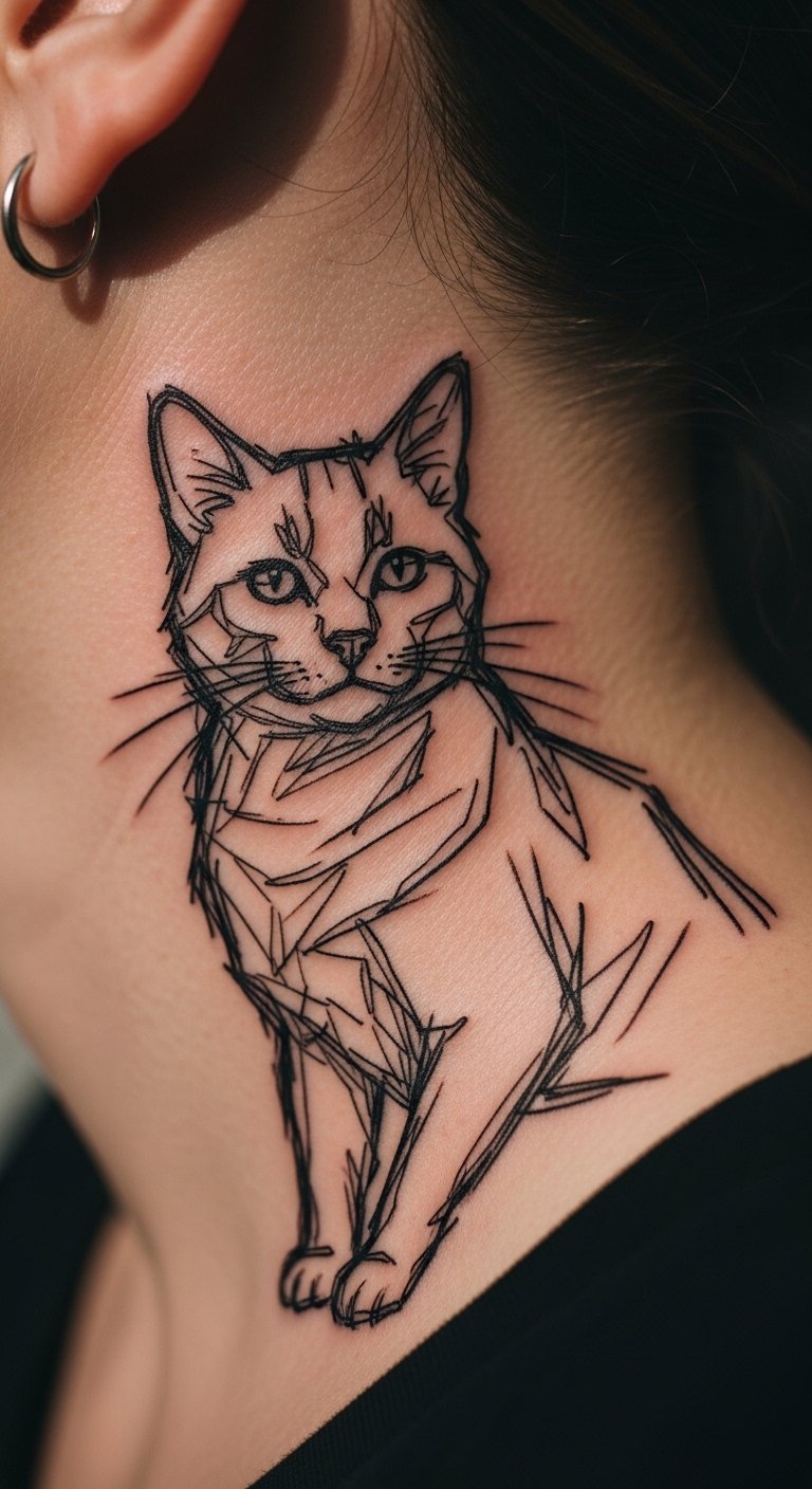 Sketch a cat with wobbly ears. Start with simple shapes. Practice on scrap paper. Get a budget kit for $35. Animal quirks add charm. Spot on your neck for style. Share ideas with friends. This keeps it light. No pro needed. Just basic tools.
