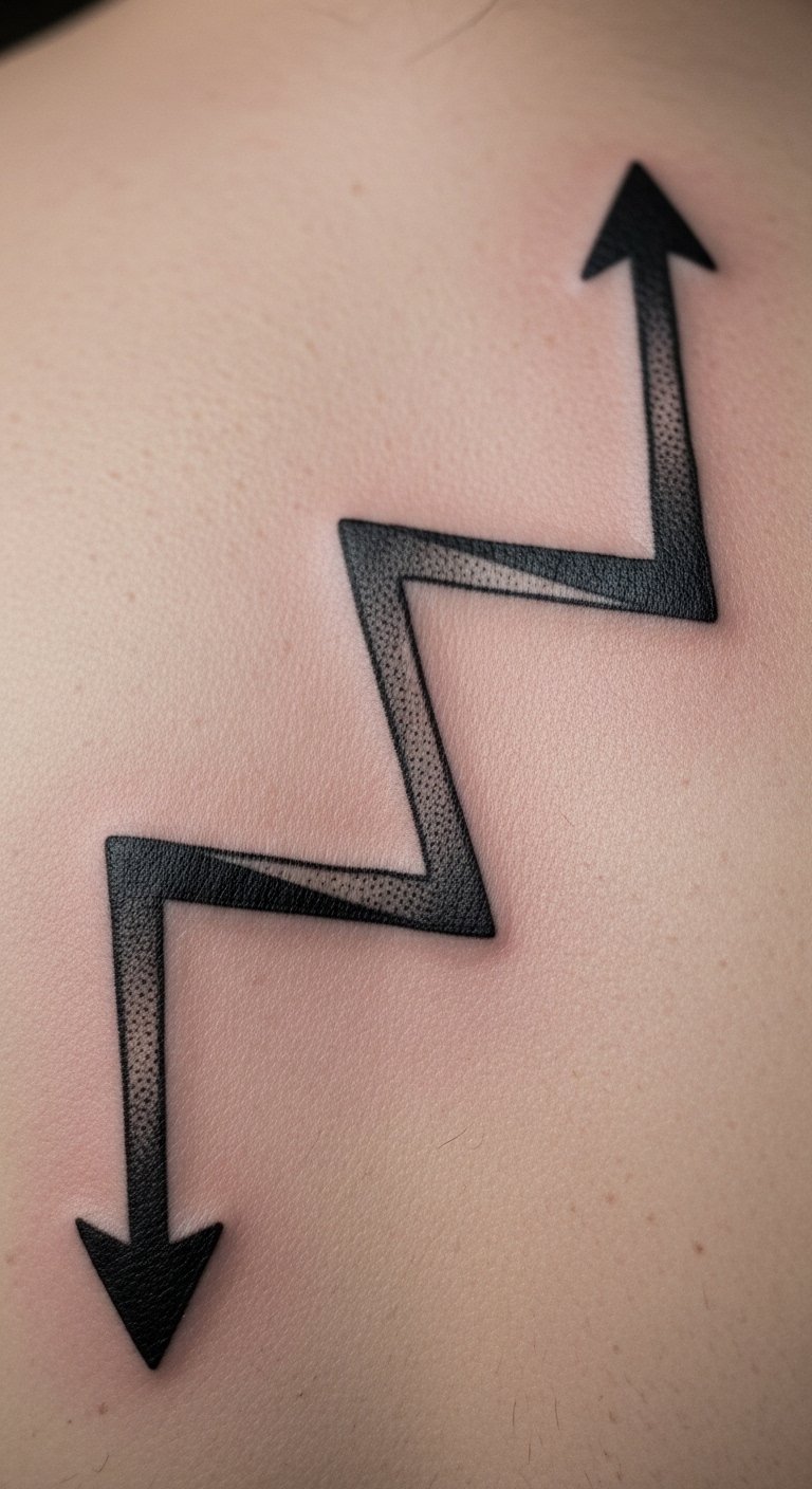 Sketch an arrow with curves. Plan ahead. Test areas. Purchase for $15. Arrow angles guide creativity. Spot on your back. Do at home. This is straightforward. Make it your way.