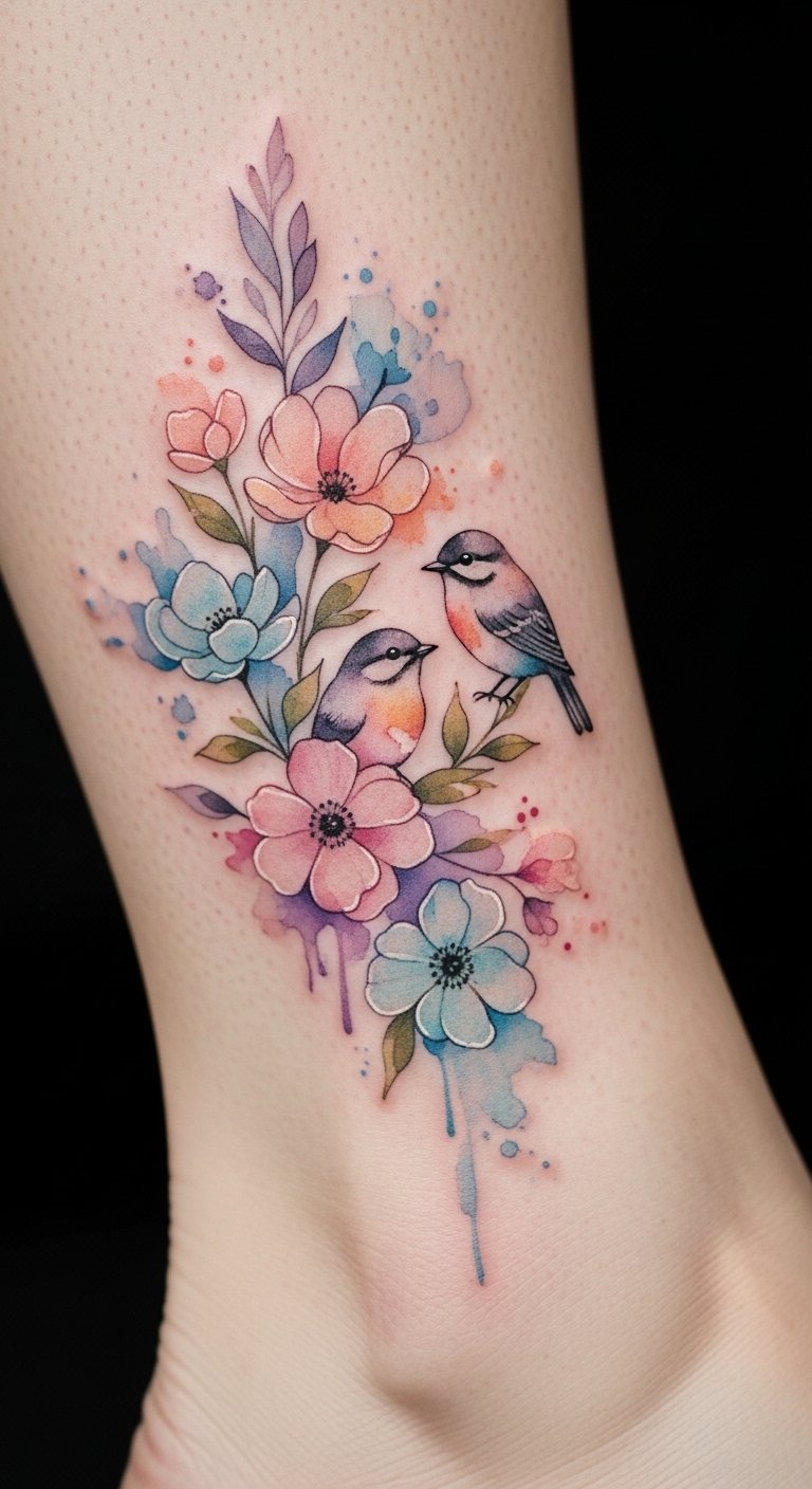Watercolor tattoos mimic paint strokes for a dreamy effect. Think soft flowers or birds in fluid hues. Grab affordable markers to sketch designs at home before committing. A DIY version with temporary ink lets you experiment for under $5. Place it on your arm for easy viewing. Soft pastel colors create that light feel. Add your twist, like a favorite flower, for fun. Artists often have budget sessions mid-week, so check for discounts. This method keeps things fresh and low-cost. Start small to see how it suits you.