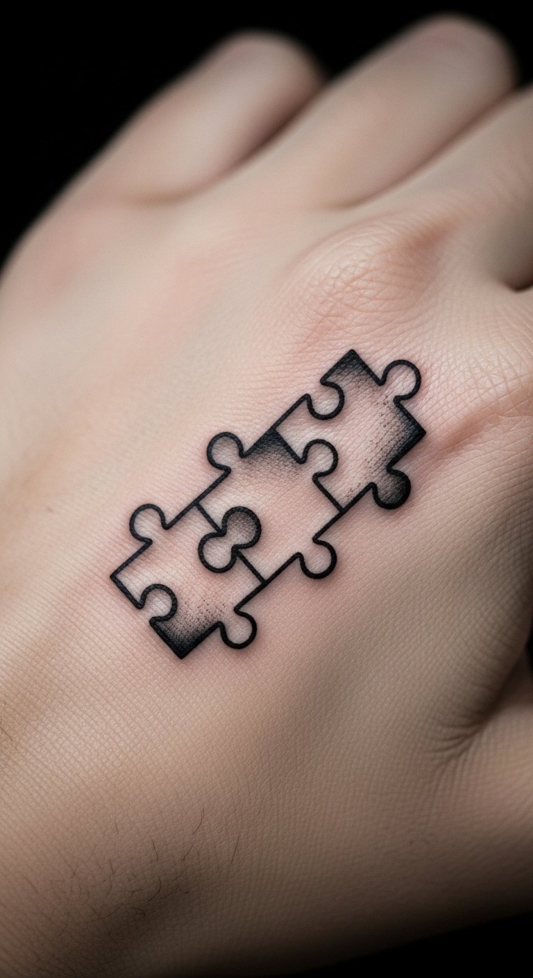 Puzzle pieces symbolize connection or growth. They fit personal journeys. Cut shapes from paper at home for planning. Temporary designs cost little to try. Opt for your palm for visibility. Puzzle pieces represent bonds. Include a custom detail. Look for group tattoo events for deals. This tells your story economically. Start with one piece.