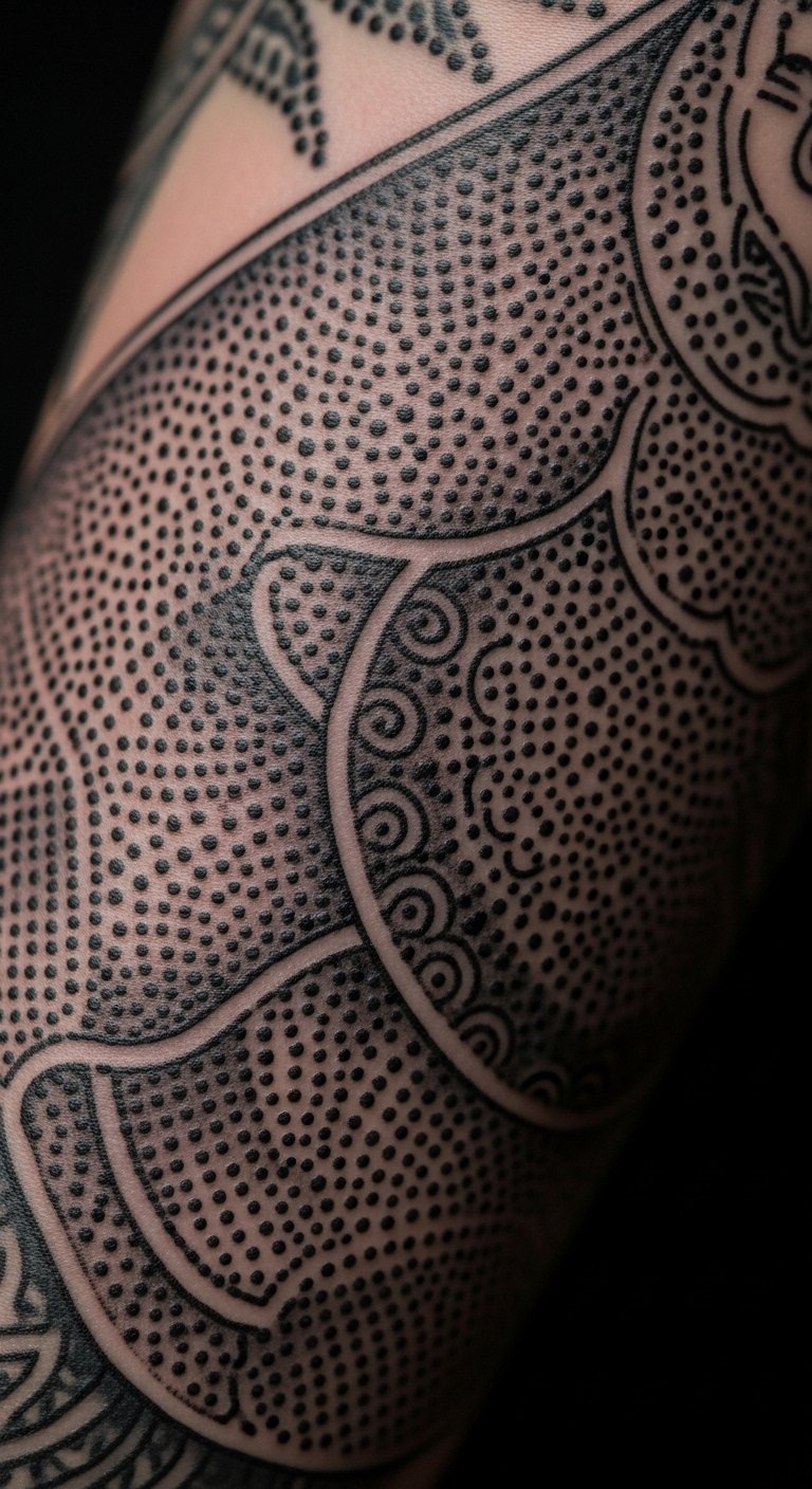 Dotwork uses dots for texture in tattoos. Think shaded patterns that pop. Poke dots on paper at home simply. Stamp kits mimic it for under $5. Place on your forearm for art. Dotwork technique builds depth. Include a meaningful symbol. Search for affordable sessions online. This creates interest without fuss. Try a small section.