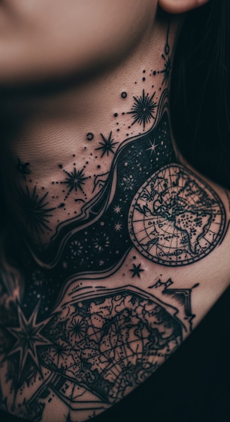 Celestial tattoos feature stars or maps for wonder. They capture the night sky. Draw constellations at home simply. Glow stickers preview it. Place on your neck for mystery. Celestial maps inspire awe. Add a birth sign. Check for night-themed events. This explores space on a budget. Try a star first.
