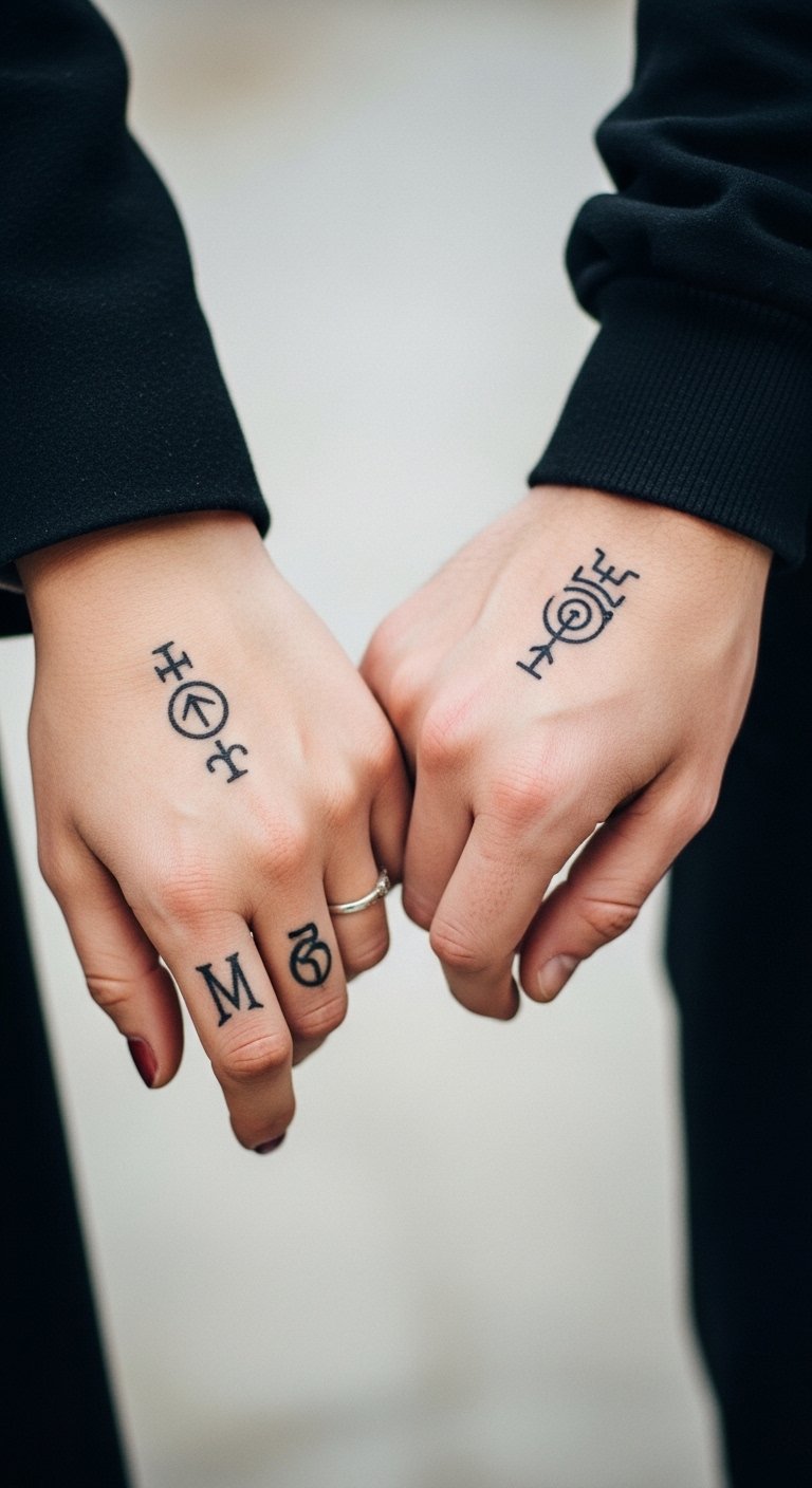 Couple tattoos link partners with shared designs. Think complementary symbols. Draw together on paper for fun. Matching stickers test the idea. Place on fingers for closeness. Couple tattoos build bonds. Include a shared memory. Seek duo discounts at studios. This strengthens relationships cheaply. Start with a simple match.