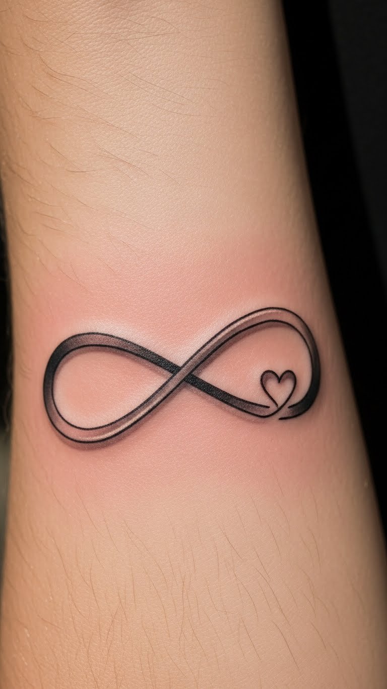 Think about a basic infinity with a heart twist. This design keeps things straightforward. Start with a simple loop and add a heart shape in the middle. It works great for first-timers. Pick a spot like your wrist for easy visibility. To save money, sketch it out on paper first. Use a fine-tip pen to draw on your skin as a temporary test. Local artists often offer deals for small tattoos. Go for black ink to keep costs down. Add personal touches, like a small dot, with at-home henna kits. This way, you try the look without commitment. Real talk: many folks mix this with names for a custom feel. Aim for a size that fits your budget—smaller ones cost less. Visit a studio during off-peak hours for discounts. Remember, clean lines make it pop. Get feedback from friends before going pro. In the end, this tattoo says love goes on.