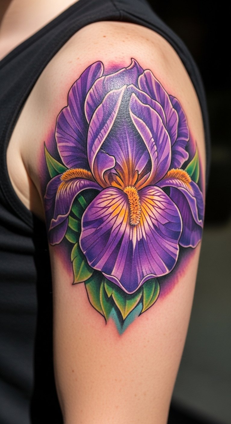 A vibrant purple arm iris stands out with its rich color. Imagine petals that pop in deep violet. This idea adds flair to your routine. Draw a rough version at home using colored pencils. Look for artists who offer deals around $100. Choose a spot that’s easy to show off. Keep the design small to cut costs. Add some leaves for extra fun. Schedule a quick appointment to fit your day. Cover it with clothing if needed. Test the color with temporary tattoos first.