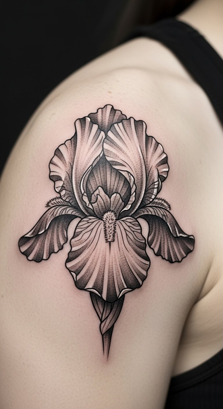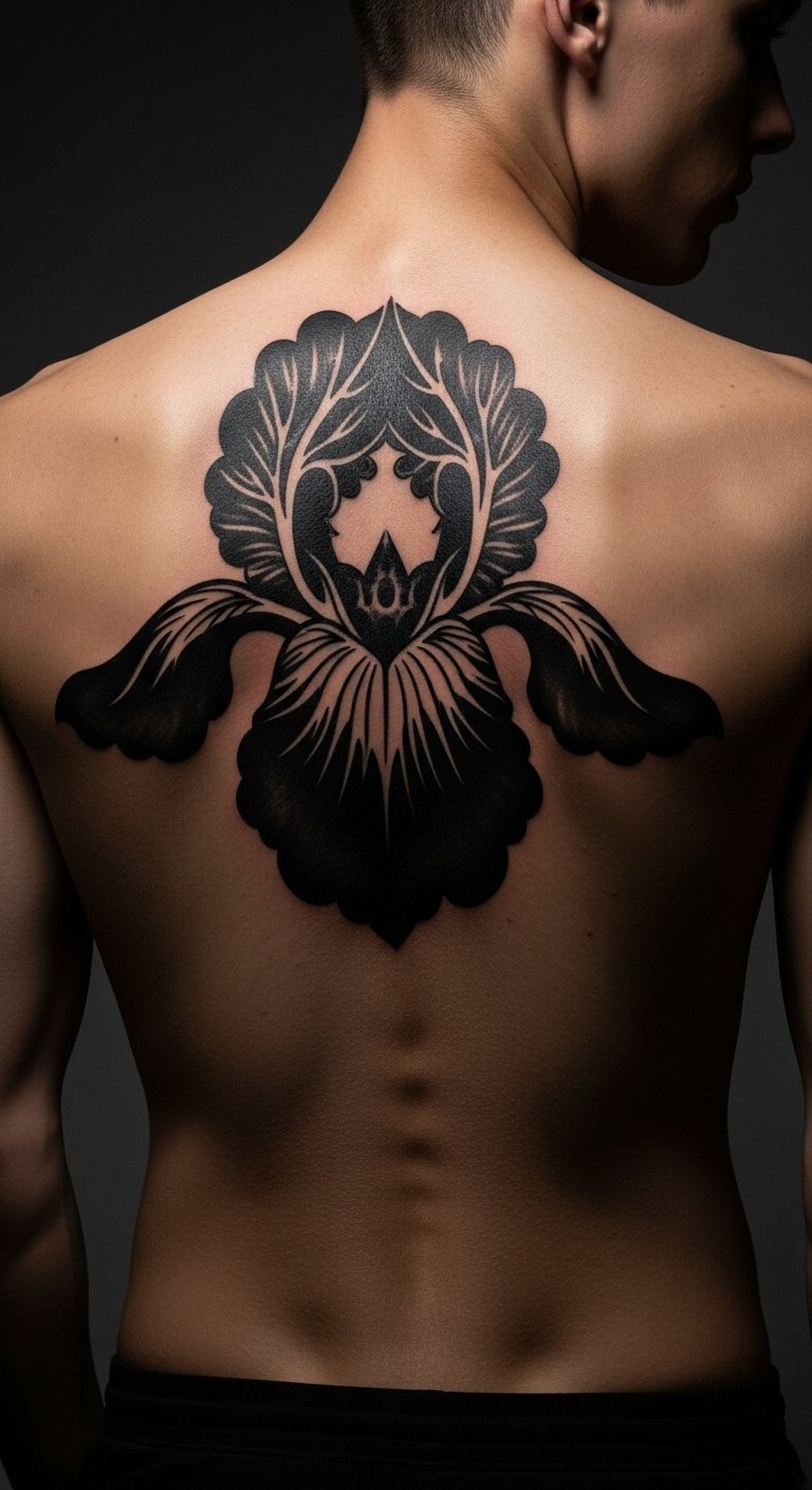 A bold black back iris makes a statement. See it as a big, dark flower spanning your spine. This spot lets you go all out. Practice by drawing on paper with charcoal. Search for artists charging $150 or less. Keep the lines thick for impact. Do a home outline with ink pens. Plan for a longer session but split it up. Use a mirror to check placement. Apply lotion daily to maintain it.