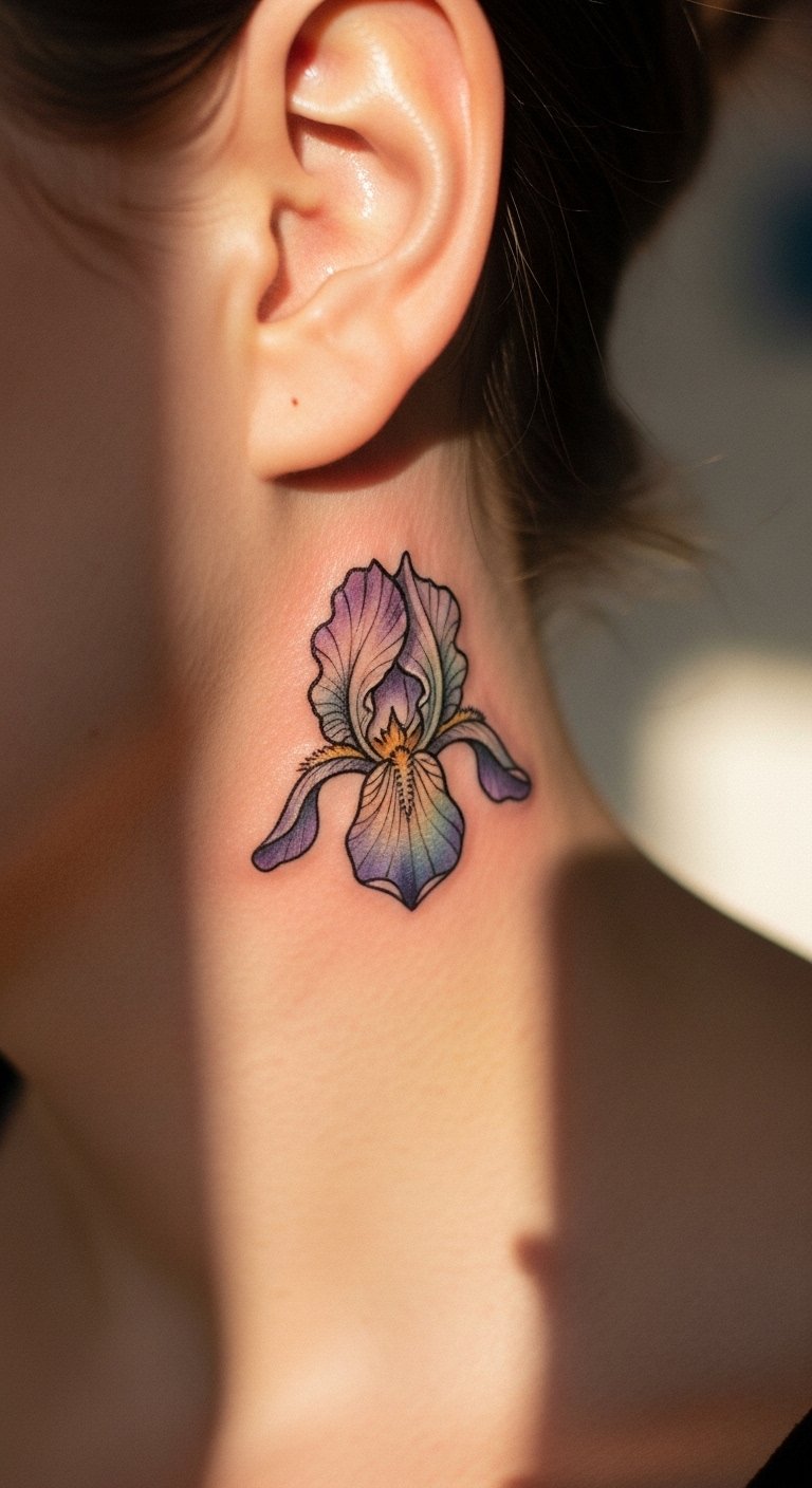 A delicate neck iris offers a subtle touch. Envision a tiny flower near your collar. This spot mixes visibility with discretion. Sketch it with fine-tip pens at home. Find deals online for around $60. Opt for thin lines to keep it light. Try neck drawings in the mirror first. Schedule during off-peak hours. Cover with a scarf if required. Test with henna for a quick try.