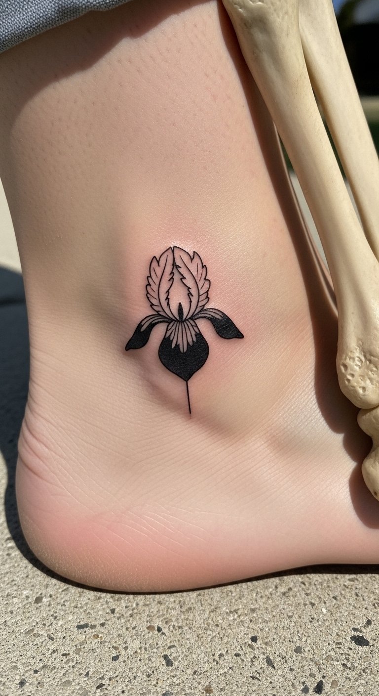 A simple ankle iris feels easy and everyday. Think of a basic outline that wraps your foot. This placement works for active folks. Draw it on with ankle bands for practice. Artists might charge $40 for this. Keep it one color to save. Use string to outline at home. Book a fast session. Wear socks to protect it. Try temporary ink kits.