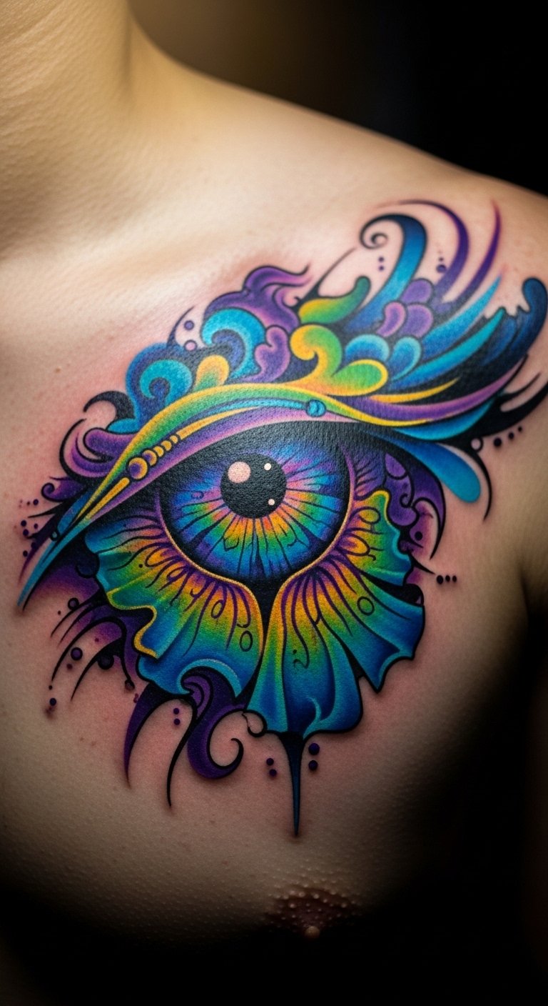An abstract chest iris plays with forms. Imagine swirled colors on your torso. This sparks imagination. Create abstracts with paints. Artists offer for $120. Keep it free-form. Sketch on chest paper. Do in parts. Maintain with care. Use abstract stickers.