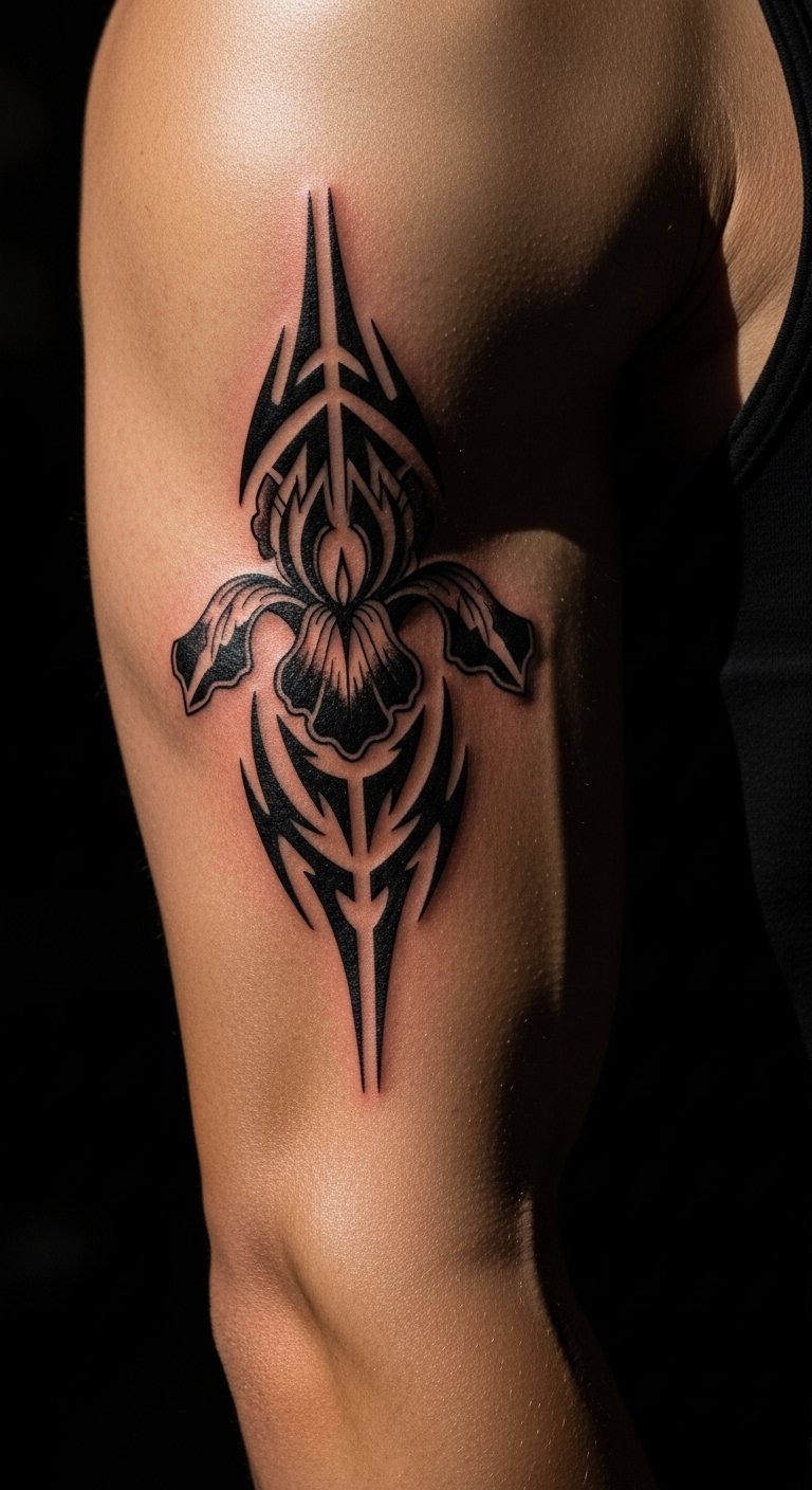 A tribal iris twist blends traditions. Picture bold lines with the flower on your arm. This honors roots. Draw tribal patterns. Artists charge $90. Add iris elements. Practice on paper. Book ahead. Protect the ink. Use tribal stencils.