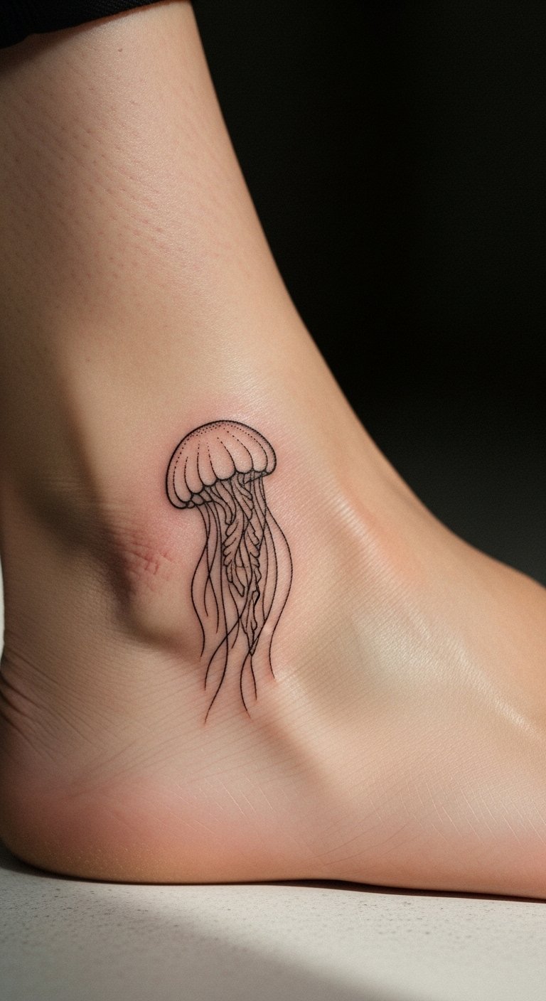 Ankle spots keep it private. A small jellyfish fits perfectly. Draw it tiny on your foot with a pen. Practice the curves. No tools required. Look for discreet tattoo offers in town. They’re often affordable. Add a wave for meaning. Use yarn to trace on your skin. It’s simple and cost-free. Slip on socks to hide it. Or go barefoot to show. Try stick-on tattoos for trials. Under $5 a pack. This choice suits everyday life.