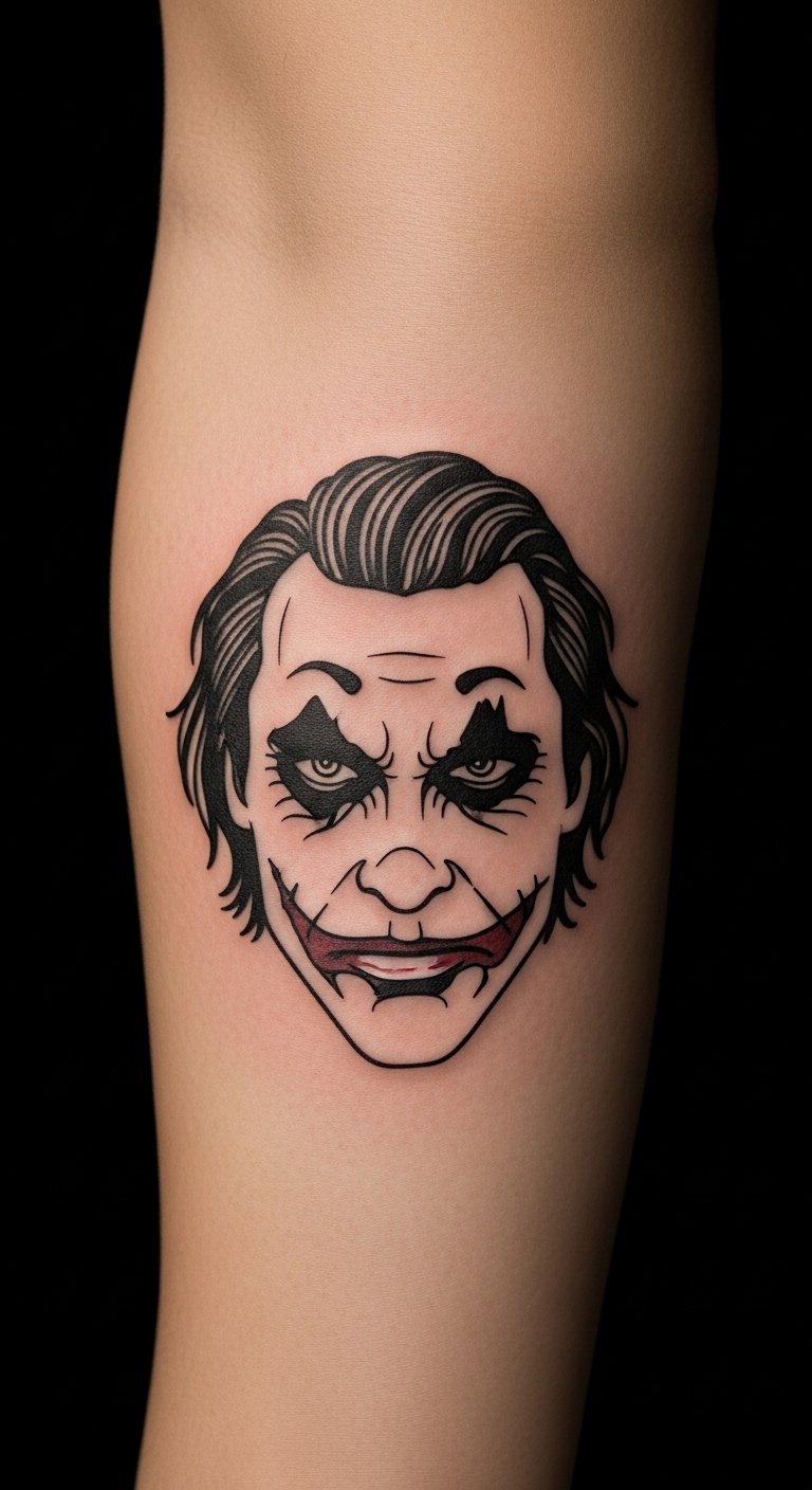 Classics never fade with Joker themes. Use traditional inks. Seek veteran artists for $100. DIY with old-school drawings. This design lasts forever. Choose what speaks to you.