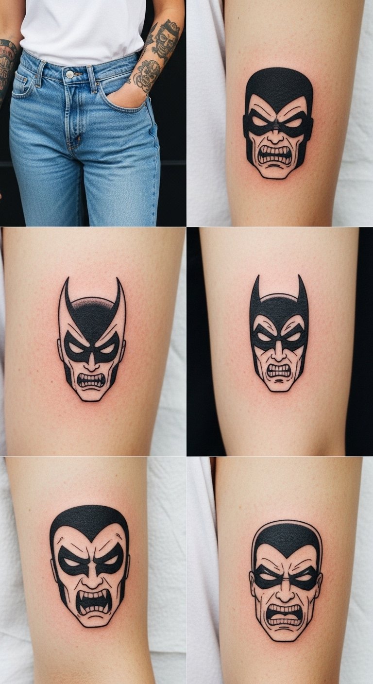 Think about the classic Joker grin—it’s simple yet unforgettable. This design uses a curved mouth with pointy teeth for that eerie laugh. Start small on your arm or wrist to keep costs low. For a DIY twist, sketch the smile on paper and trace it with henna first. Use basic drawing tools from a dollar store to practice. Pick a local artist who charges by the hour, often under $100 for basics. Go for black ink to save on color fees. Add a personal touch, like making the smile asymmetrical. Check artist portfolios online for deals. This tattoo works for anyone wanting edge without fuss.