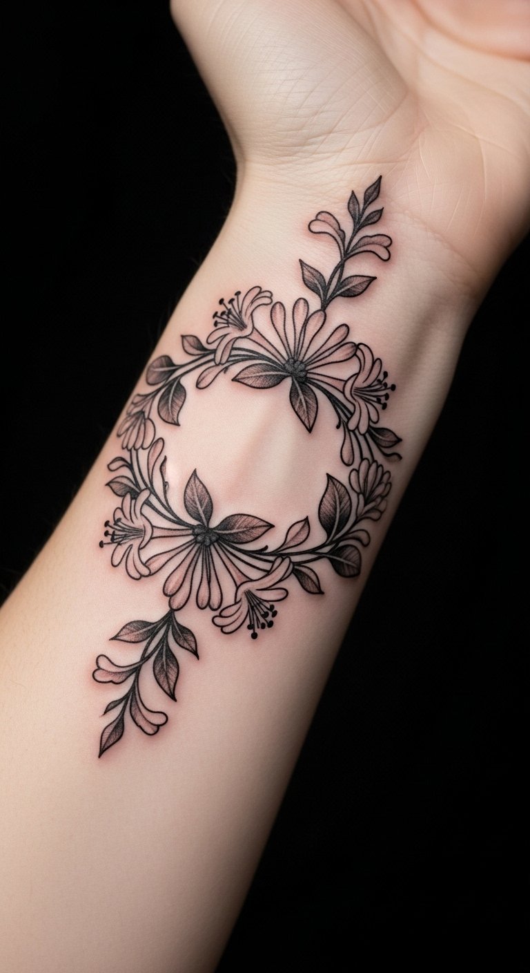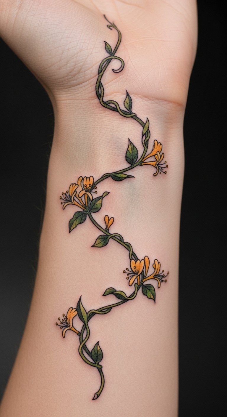 Go for a honeysuckle vine wrap if you want something light and happy. This flower means bonds and joy, perfect for a flowing design. Draw it on your arm with a marker as a DIY tryout. Use affordable supplies like washable ink to practice curves. Place it on your wrist for easy hiding or showing. Add a few leaves for a personal touch. For less money, get a henna kit and mimic the look at home. Honeysuckle for joy makes it special. Keep the design small to save on costs. It’s a great way to mark good times without much fuss.