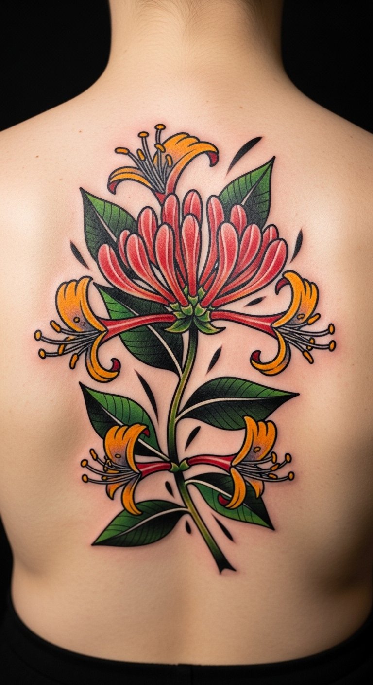Pick neo-traditional honeysuckle for bold lines and colors. It highlights happiness with a modern twist. Draw bold shapes on paper using a thick pen. This DIY step helps refine your idea. Choose your back for a larger design. Find free neo-traditional templates online to copy. Honeysuckle style stands out. Go small to keep it budget-friendly. Use markers for home practice and save on professional work.