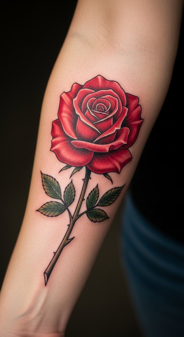 Place a red rose on your forearm for easy visibility. It symbolizes passion and fits your routine. Draw it on your arm with a washable marker first. This lets you check the spot. Forearms are great for personal stories. Use affordable stencils from online sources. Forearm rose adds a touch of you. Keep it small to manage expenses. Practice with home tools for a clear plan.