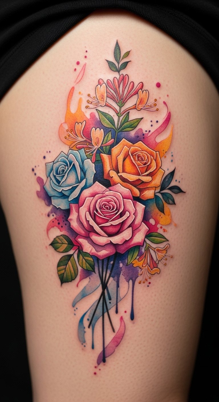 Try a watercolor rose splash for an artistic vibe. It uses soft colors to mimic paint, representing growth. Practice with watercolors on paper first. This keeps things cheap and fun. Place it on your leg for a playful spot. Use online tutorials to blend shades at home. For savings, stick to basic supplies from a craft store. Watercolor for growth brings a fresh feel. Keep the size modest to avoid extra fees. It’s easy to adapt with items you have around.
