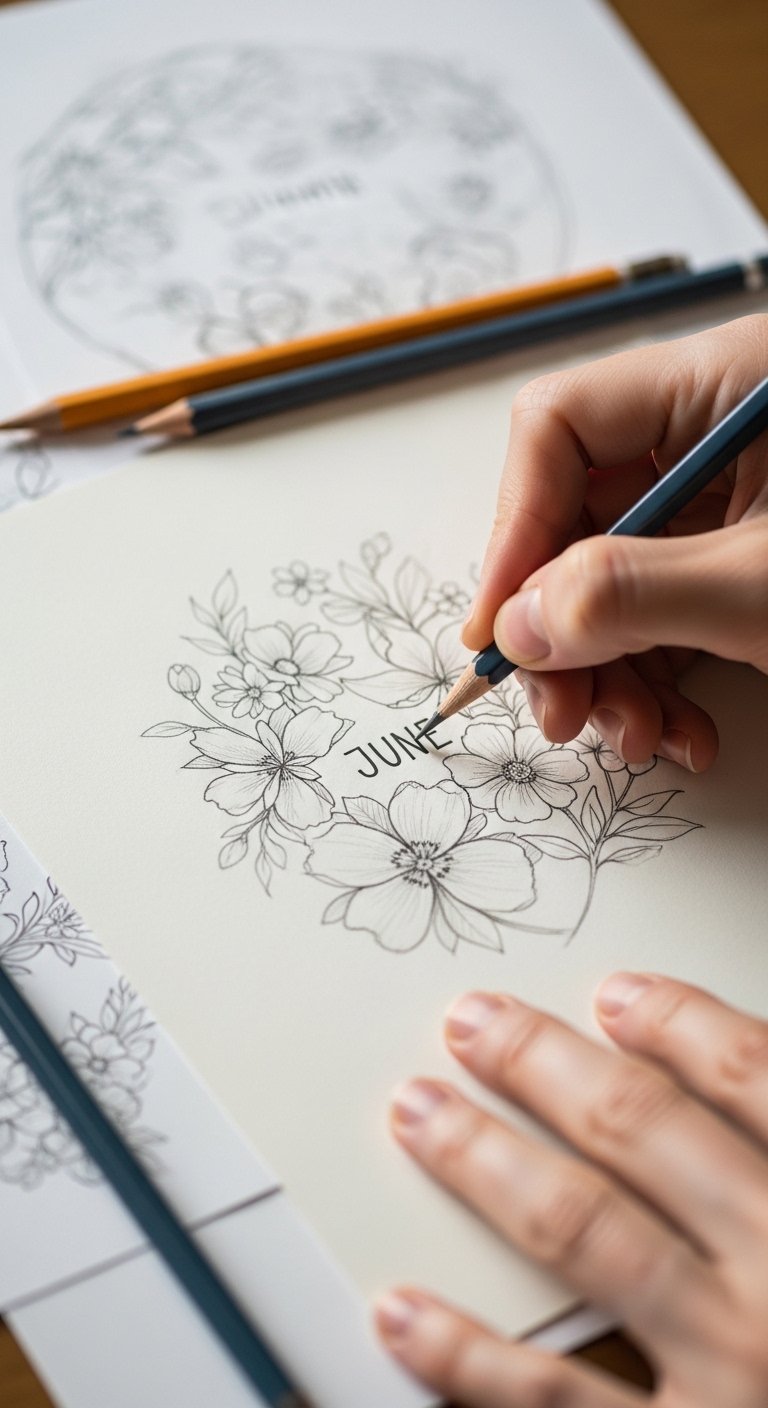 Opt for minimalist June flowers if you like clean lines. Just a few strokes can mean love or bonds. Sketch with a fine pen on paper to start. It’s a simple home activity. Put it on your finger for subtlety. Download free minimalist designs to trace. Clean lines for meaning work well. This approach costs little and fits daily life. Try it with a temporary tattoo for testing.