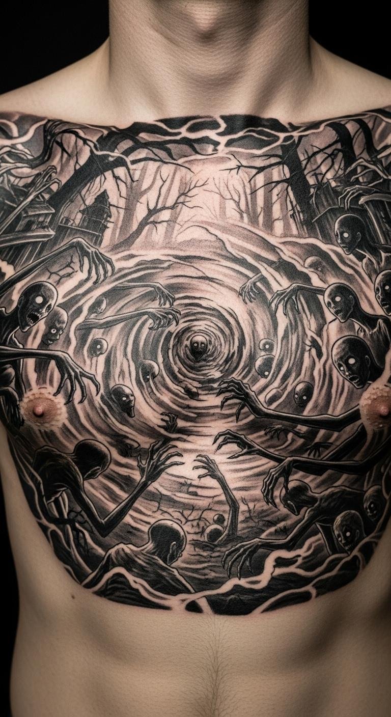 Pick a dark scene in black and grey for that classic vibe. Sketch rough versions at home with pens. Spot it on your back for privacy options. Use budget apps to adjust ideas quickly. Go with just shades of black to save cash. Throw in a small twist, like a hidden face. Build it piece by piece: draw first, then consult. Test via wash-off tattoos from the market. Aim for straightforward lines to shorten the process. Show it off under loose shirts.