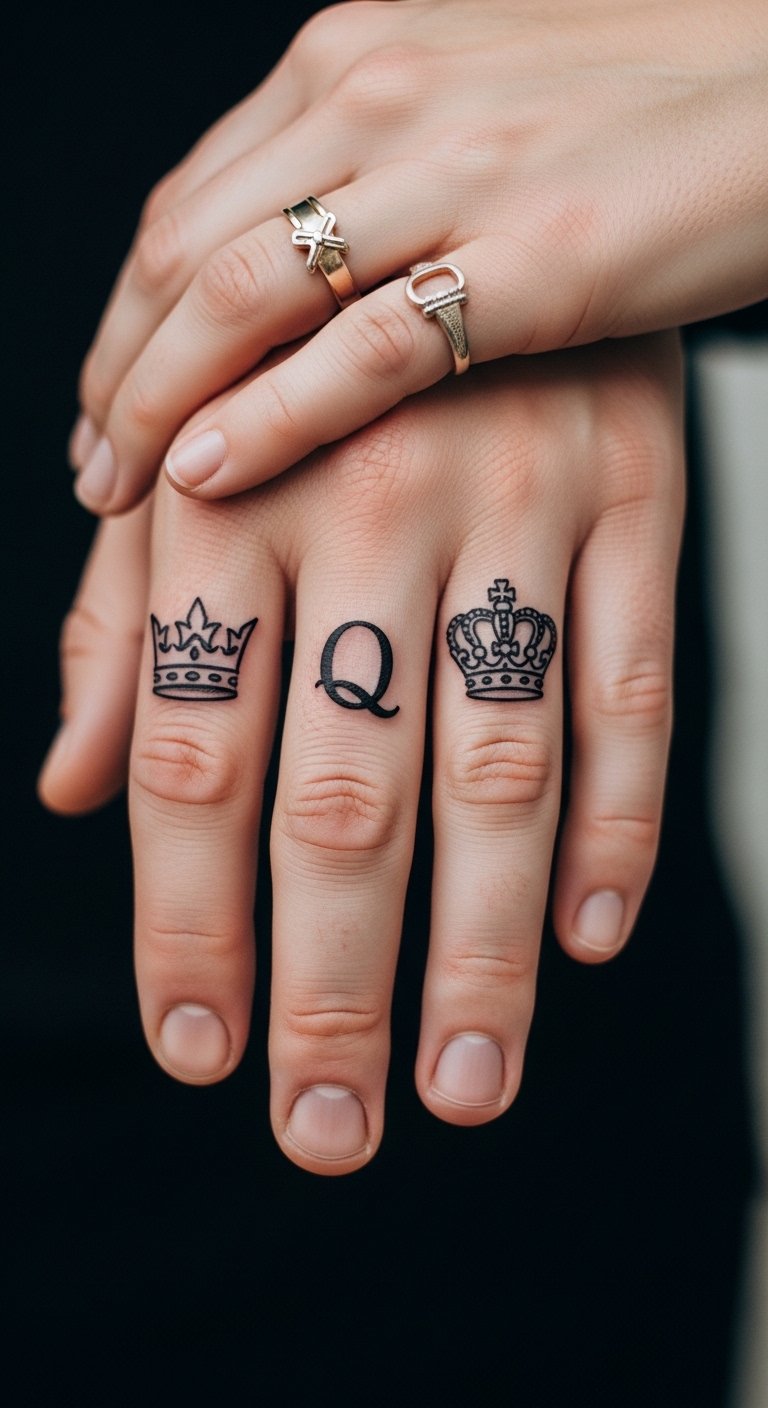 Matching king and queen tattoos show love between partners. Get one on your finger for a subtle touch. Use simple shapes to match your style. Look for deals at tattoo shops, starting at $60 each. Draw ideas on paper with your partner first. Add a date for uniqueness. This design celebrates your connection without much fuss.
