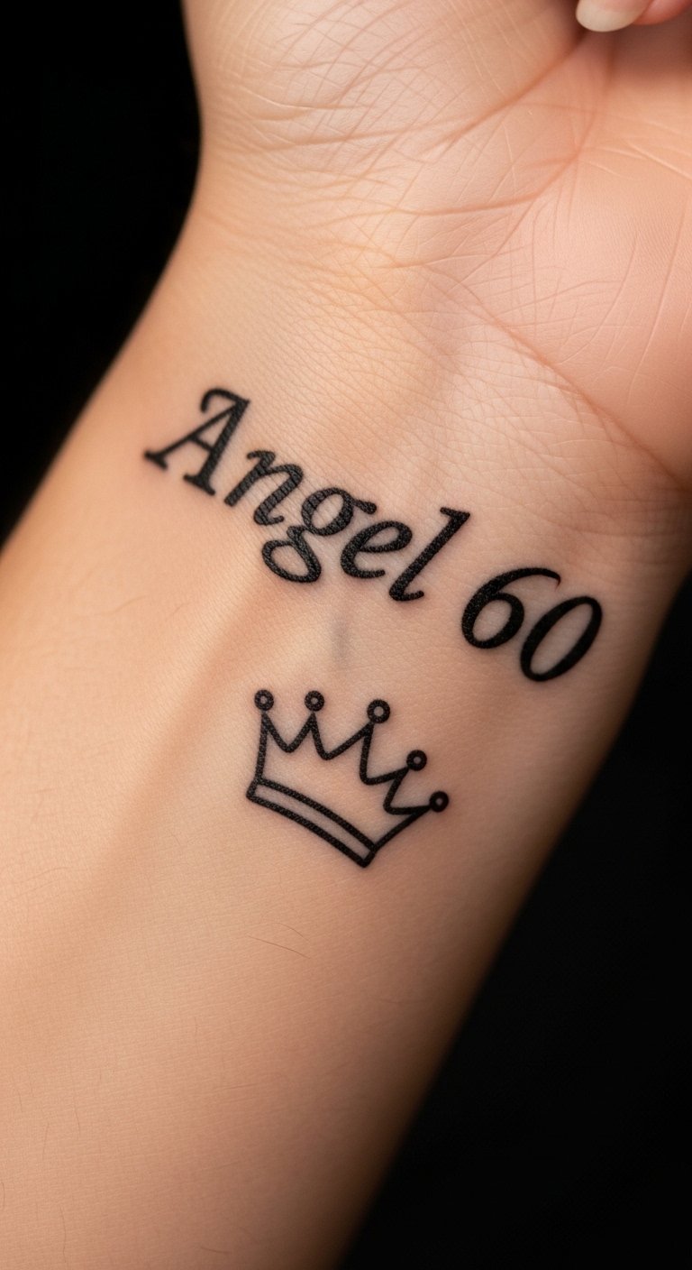 Angel number with crown tattoos add a spiritual touch. Pair numbers like 111 with a crown. Put it on your wrist for easy view. This might cost $60 total. Write numbers on paper to plan. Choose ones that mean something to you. It combines symbols in a meaningful way.