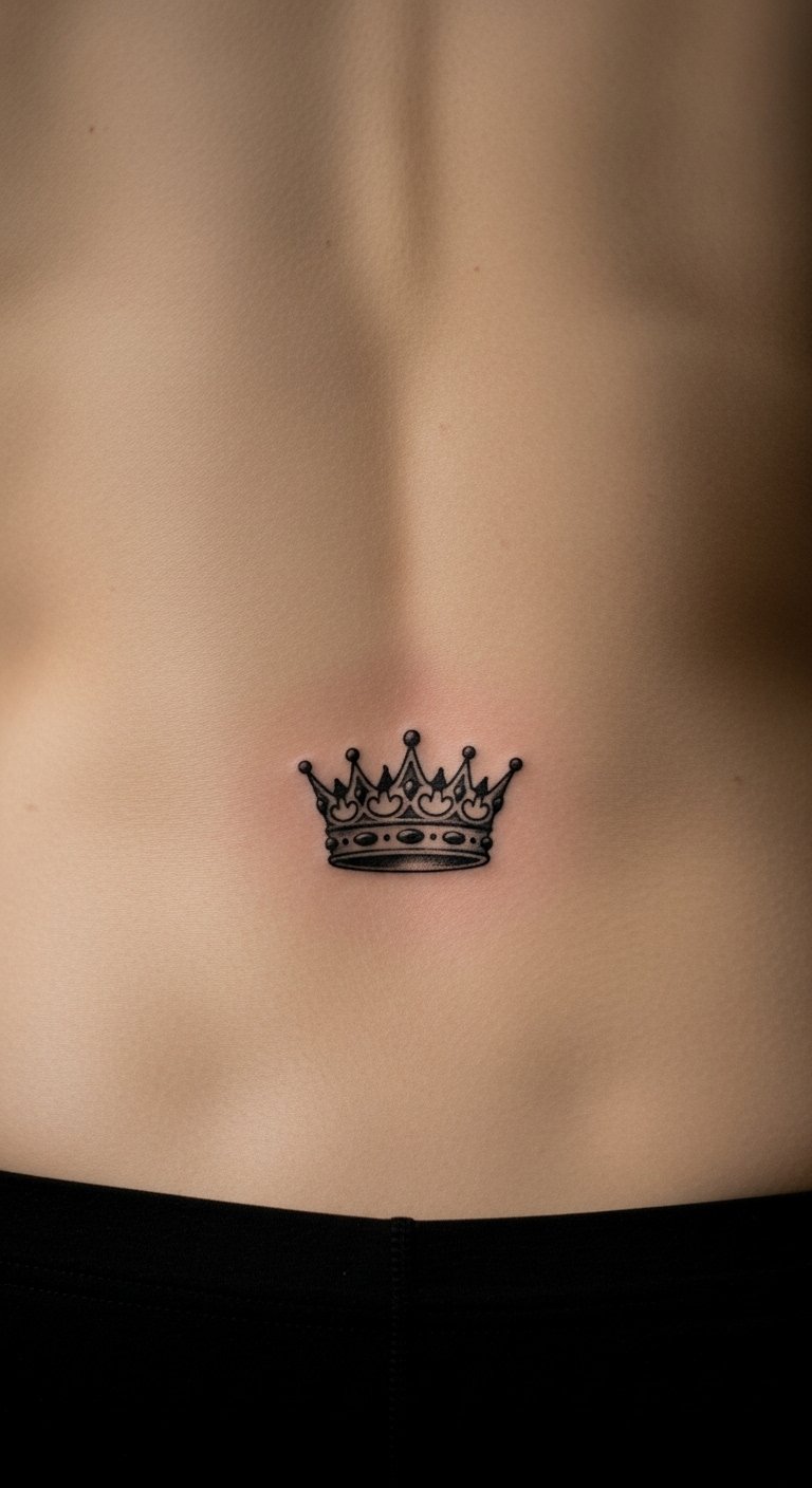 Small back king tattoos stay out of sight. A tiny crown on your lower back works well. It’s quick and painless. Expect $50 at most. Trace it on your body with washable ink. Make it fit your back shape. Great for private symbols.