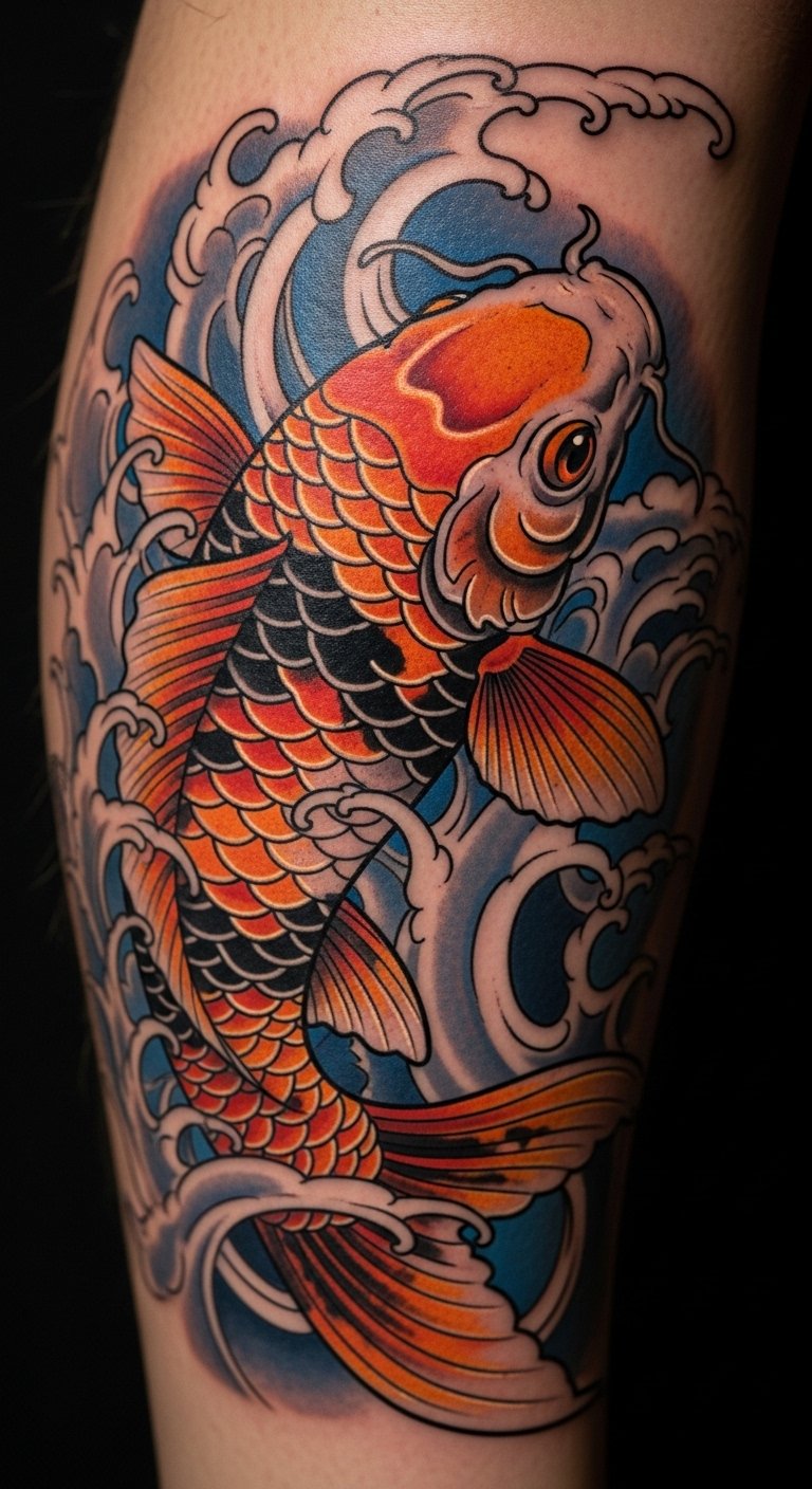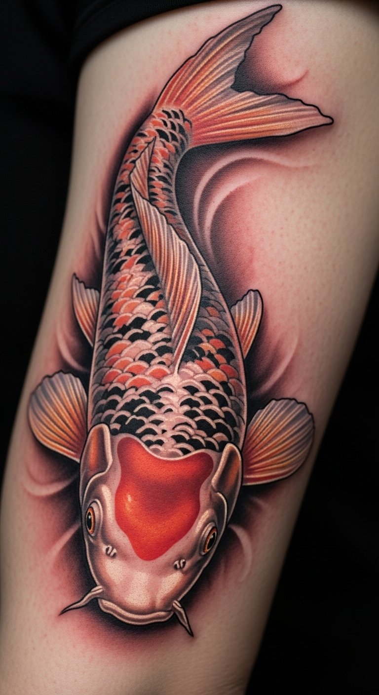 Spiritual koi tattoos map inner paths. They symbolize quests for peace. Seekers get this for clarity. Draw a path with the fish. Use crayons from kids’ sets. Opt for clean lines to save. Around $80. Place it on your forearm. Add stars for guidance. This one guides your spirit. Test with path sketches. Use everyday tools. Talk to mindful friends. You’ll find your way.