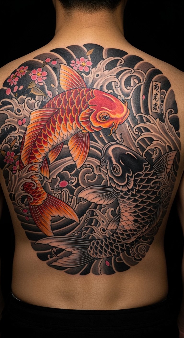 Koi back pieces make a statement. They cover space with meaning. Bold types choose this for presence. Sketch the layout on paper. Use markers for scale. Divide into parts for savings. Expect $250. Center it on your back. Include scenery around. This design amplifies your story. Practice with large drawings. Use wall space. Discuss with artists. You’ll feel the weight of your strength.