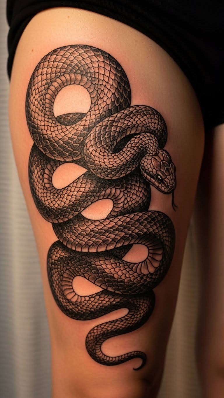 Snake Thigh Tattoo