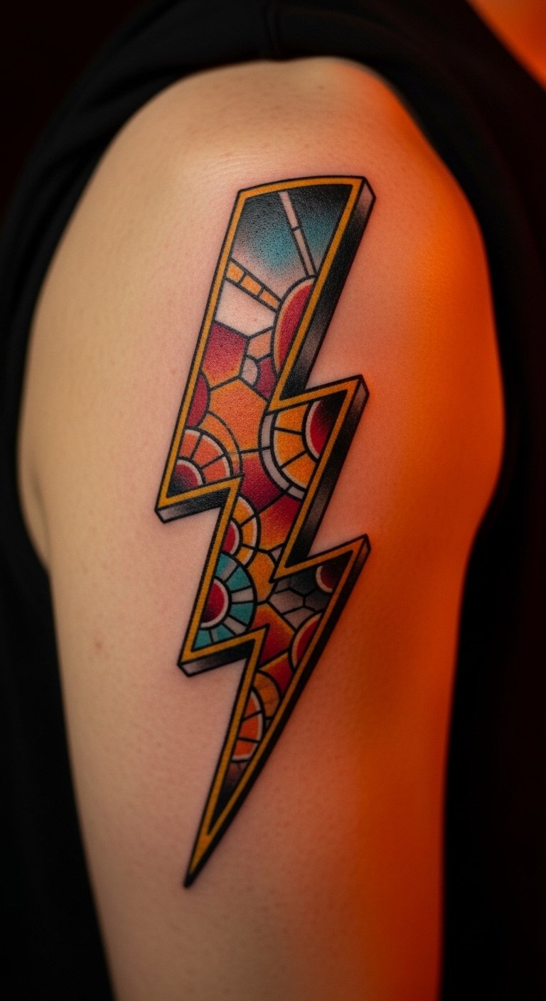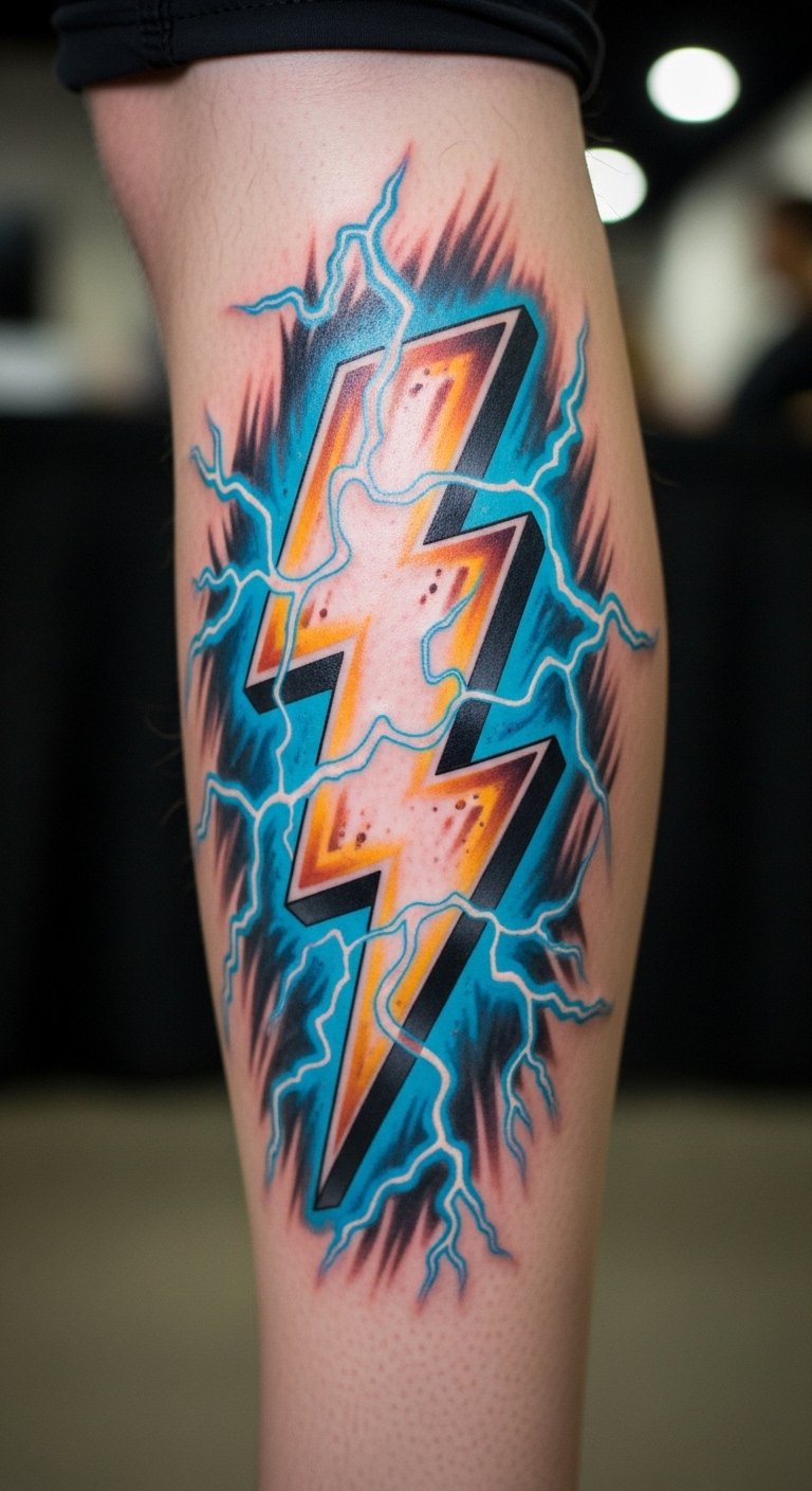 Metallic and Neon Lightning Tattoos
