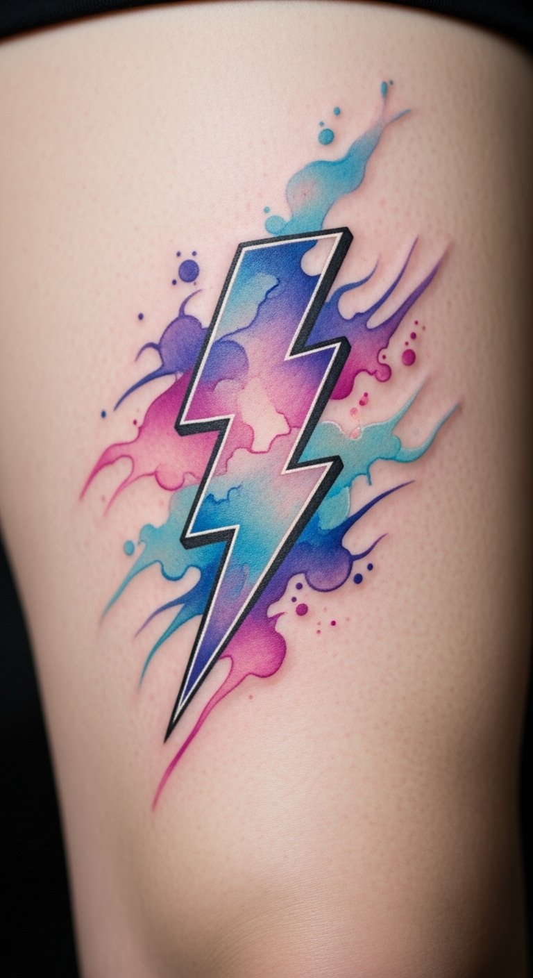 Watercolor Lightning Tattoos