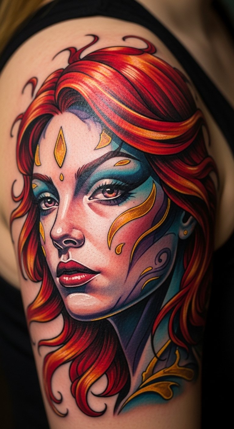 Go neo-traditional for Lilith’s classic vibe. Bold colors make it pop. It’s timeless and fun. Expect $160 from artists. Sketch traditional elements at home. Add modern twists easily. Upper arm spot works well. Choose key colors to afford. Care for it with daily cream. This tattoo honors your heritage. Get input from friends.