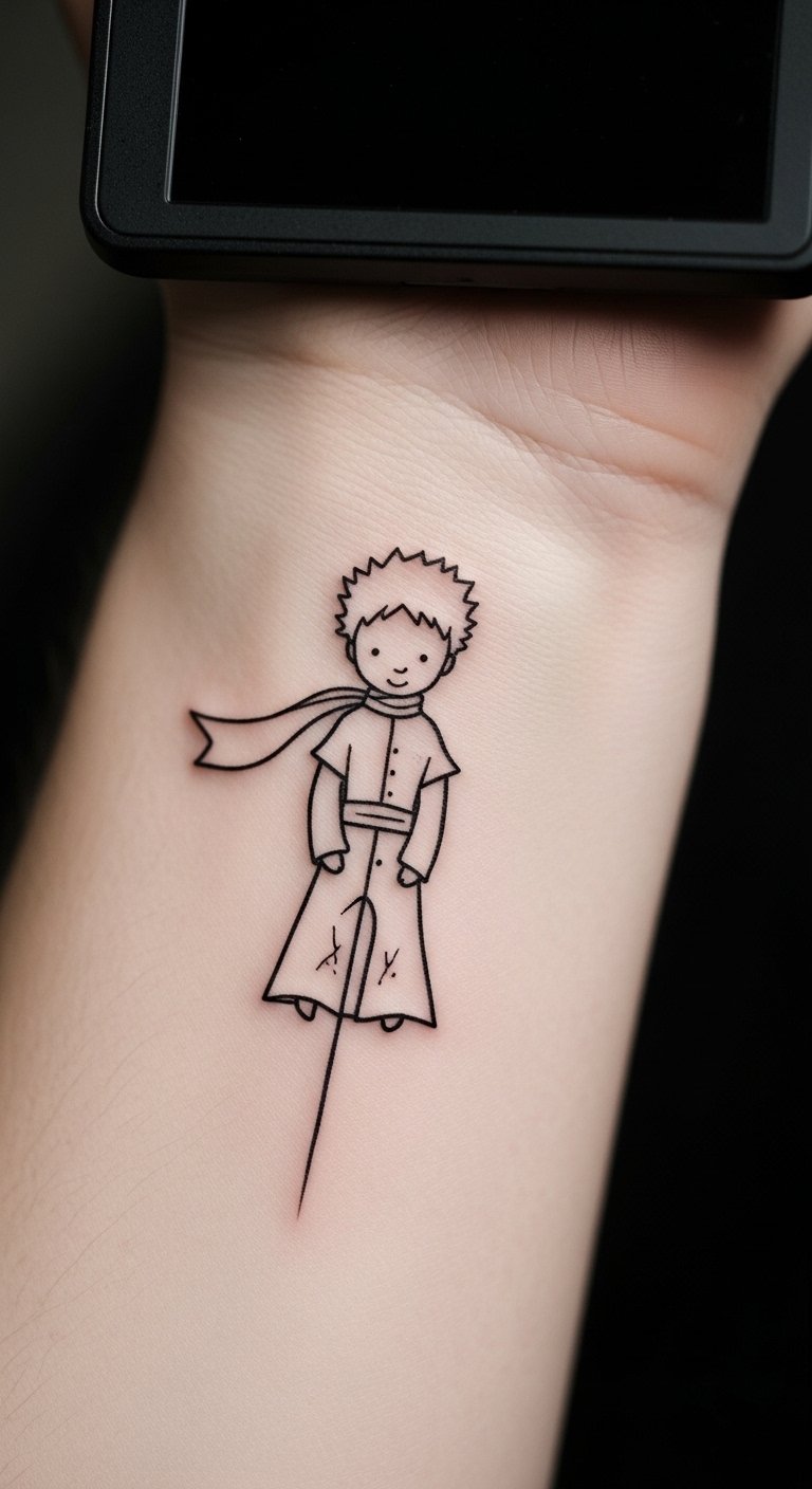 Pair the prince with a rose for a symbol of love and care. This combo tells a story of tender connections in one spot. Grab a notebook and draw the elements yourself as a DIY start. Use phone apps with drawing tools to mix ideas without spending much. Budget tip: Check community tattoo events for deals, sometimes as low as $50 for outlines. Focus on small sizes to keep it affordable. Place it on your arm for easy viewing. Add a leaf detail with household markers during planning. This keeps the tattoo meaningful yet simple. You’ll appreciate how it sparks daily reflections on relationships.
