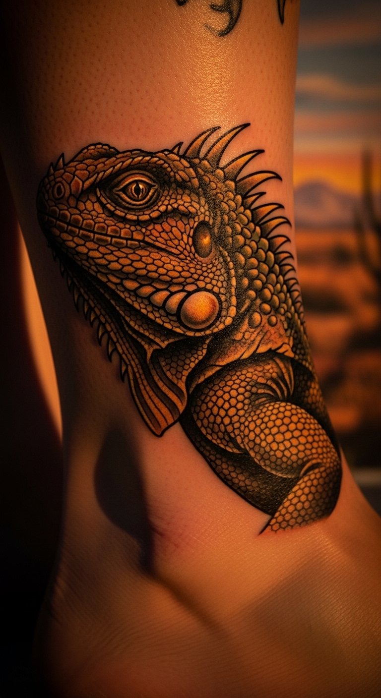 Picture a desert iguana tattoo for that adventurous edge. It’s all about rugged charm and hidden strength. Draw it out at home with colored pencils for practice. This costs nothing and sparks ideas. Look for free online tutorials to refine your sketch. Once happy, head to a budget studio nearby. Opt for simple shading to save on price, maybe $60 total. Put it on your leg for a subtle statement. Try a DIY temporary version with henna kits from the store. They run cheap and wash off easy. Add elements like cacti using your own doodles. This keeps things personal and low-key. Focus on basic shapes to make it simple. You’ll enjoy the process without stress. Share your design with pals for quick tips. It’s a step toward owning your style.