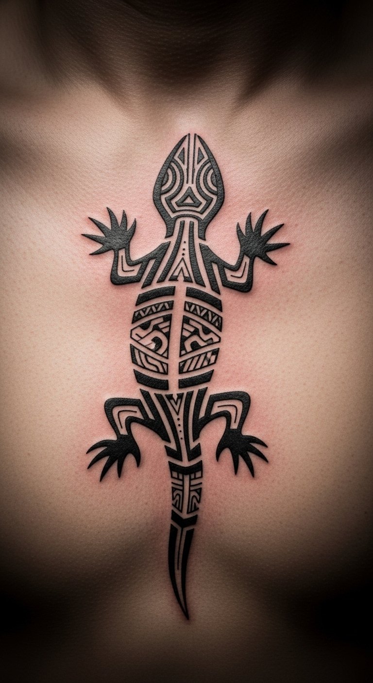 Go for a tribal lizard to honor old traditions. It’s strong and symbolic. Sketch the patterns on paper with a pen. This step is free and helps you decide. Watch free videos for tribal ideas. Visit a local shop for the real deal. Stick to black lines to keep it cheap, about $70. Position it on your chest for a personal touch. Create a fake one with stickers from home supplies. They stick easy and peel off. Layer simple shapes for your version. This makes it accessible. Ask buddies for their thoughts. Your ink will carry meaning every day.