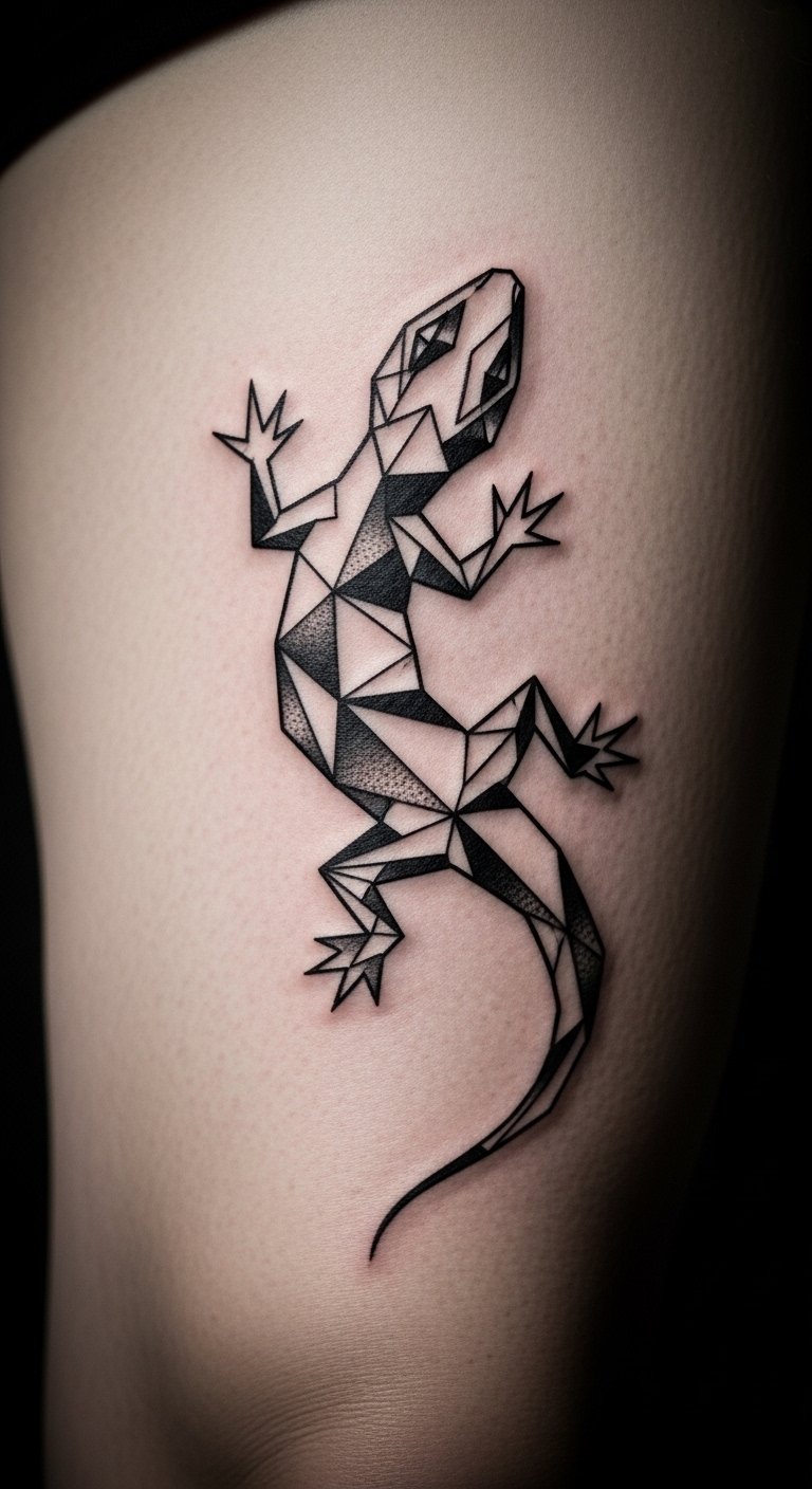 A geometric lizard adds a modern twist. It’s sharp and structured. Draw grids on paper to plan it. Use items you have like rulers. Free apps help with precise designs. Head to a nearby artist when set. Opt for minimal details to save money, say $75. Put it on your thigh for easy access. Try a temporary with tape and markers. This way, you test at home. Build it with basic geometric forms. Keep the process light. Show your draft to friends. Your tattoo will stand out with style.