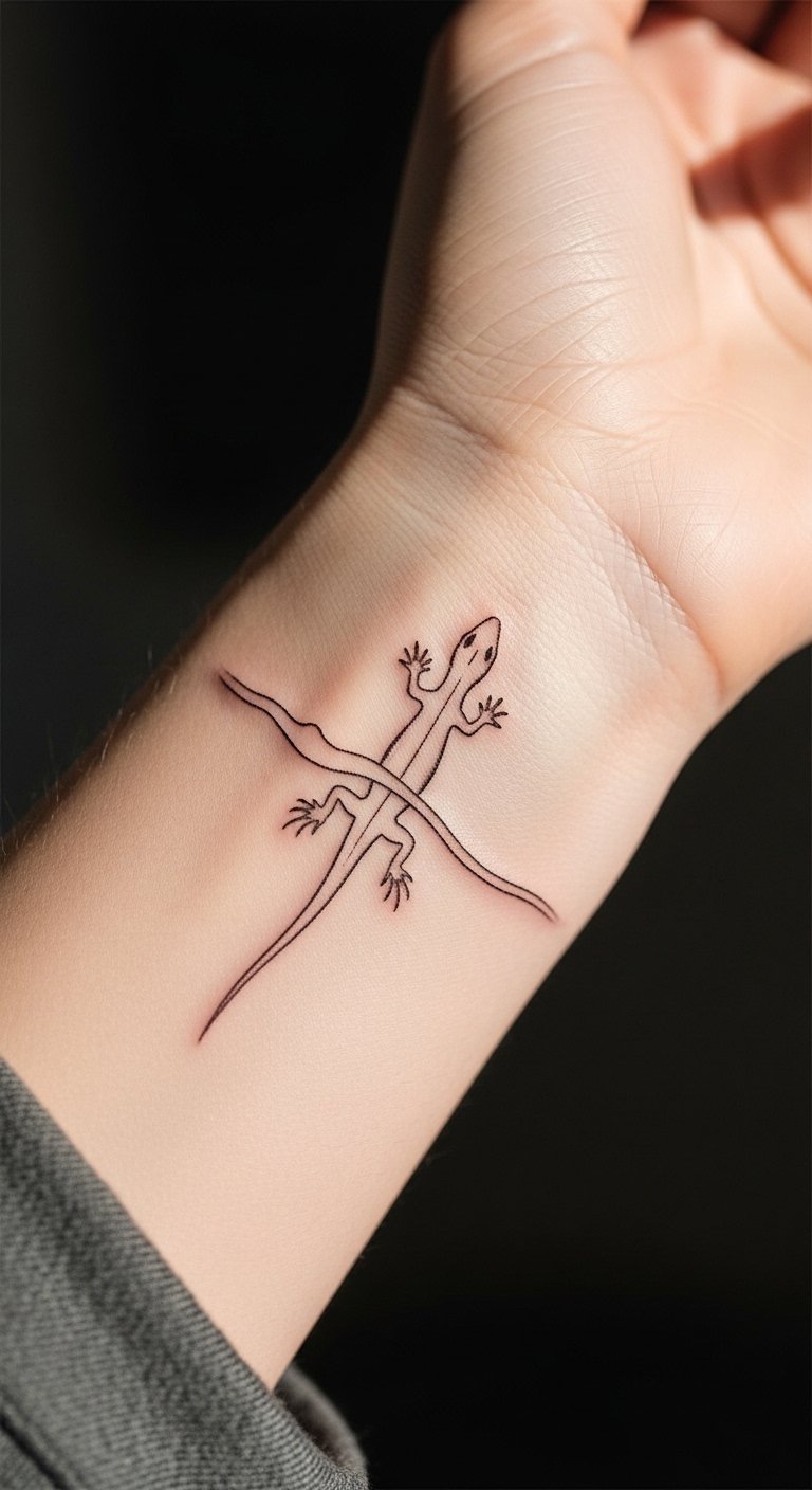 A wrist wrap lizard is discreet and elegant. It’s gentle yet present. Trace it on your skin with a marker. This tests the feel without cost. Online guides offer free templates. Find an affordable spot locally. Keep lines thin to save, about $55. Wrap it around your wrist for daily wear. Use bandage wraps for a temporary try. Do it yourself at home. Layer with simple bands. This keeps it real. Share with pals for advice. Your tattoo will be a quiet statement.