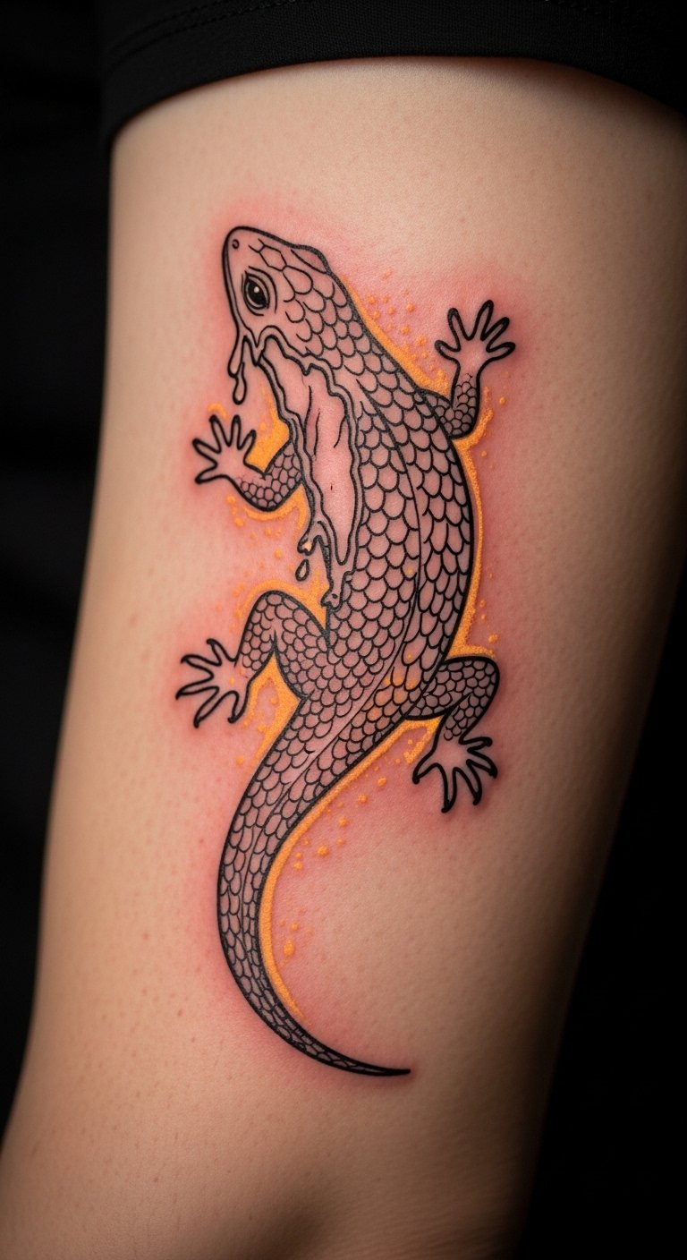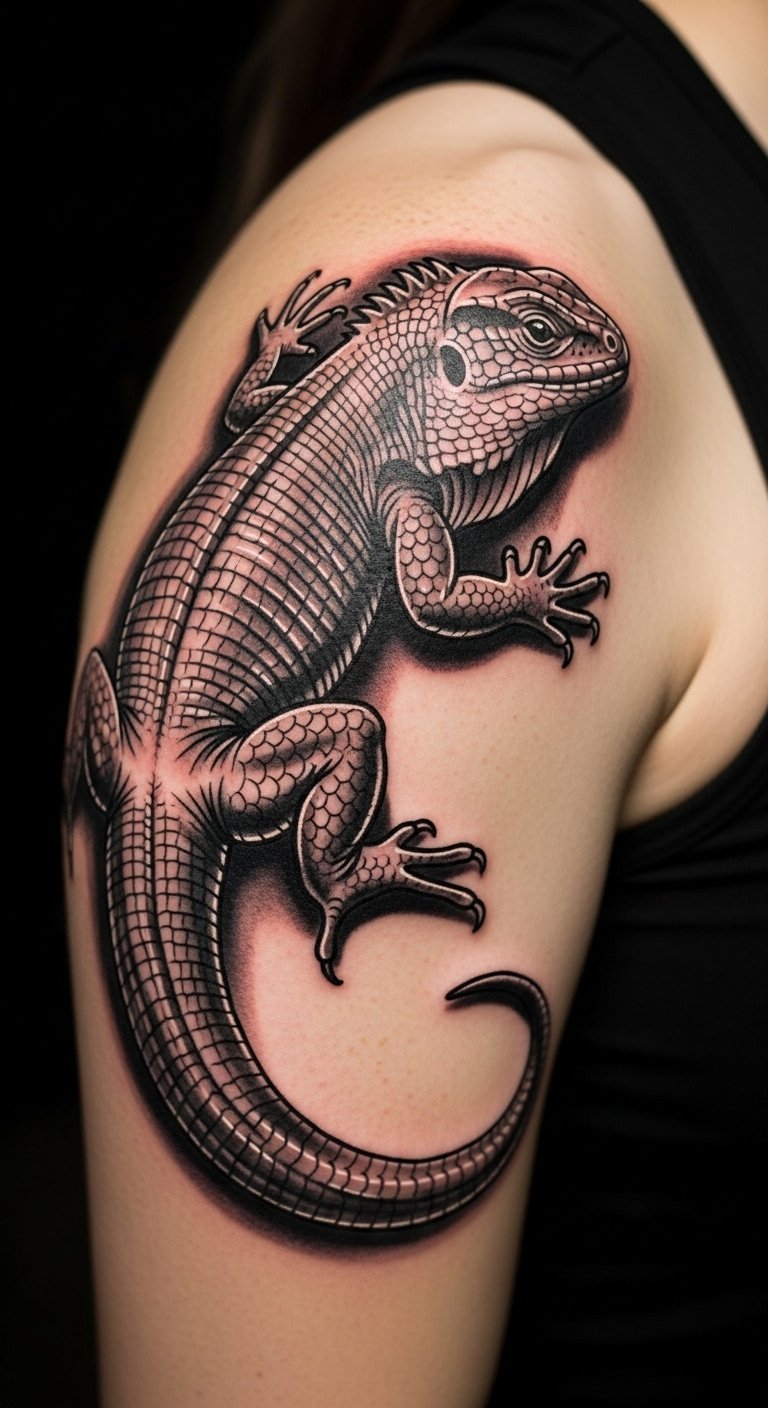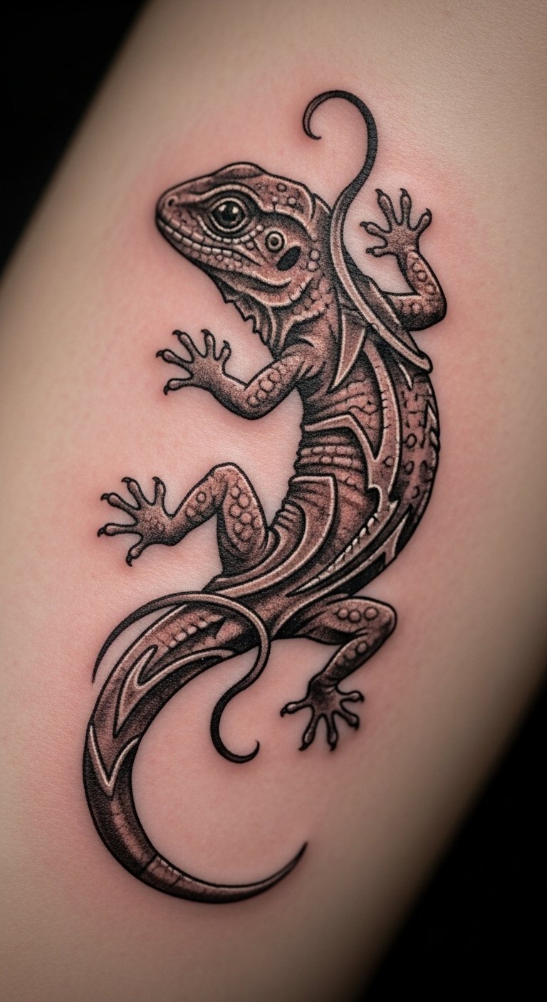 These lizard tattoos open doors to your creativity and style. Pick one that speaks to you, grab a sketch pad, and start your own design adventure today—your skin awaits the transformation.