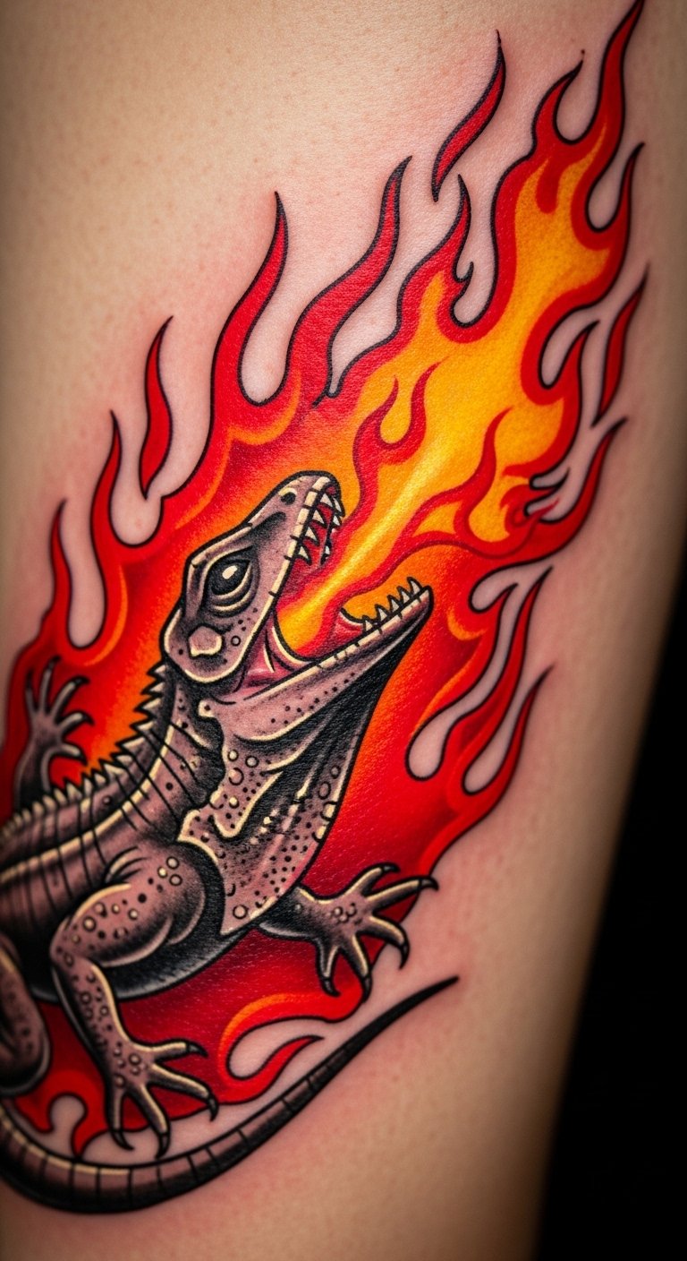 A fire-breathing lizard adds heat. It’s exciting and fierce. Draw flames on paper. Use crayons. Free fire tutorials. Visit a local artist. Limit colors for savings, around $80. Put it on your arm. Try a flame sticker first. Do it yourself. Add sparks with markers. It’s energetic. Share with buddies. Your tattoo will burn bright.