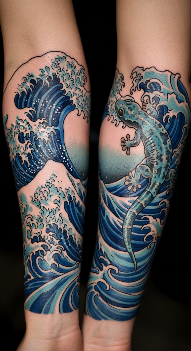An ocean lizard companion flows with the sea. It’s serene and connected. Sketch waves on paper. This is free. Online sea art helps. Find an affordable shop. Use simple waves to cut costs, say $75. Place it on your back. Make a water drawing at home. Use blues you have. Blend elements easily. It’s calming. Ask friends for thoughts. Your ink will wave stories.