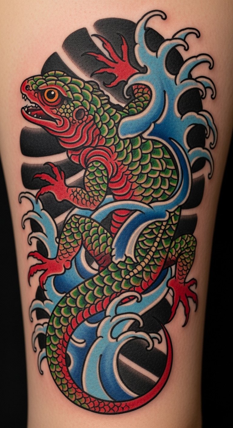 Japanese lizard influence draws from history. It’s cultural and strong. Draw traditional elements. Use ink. Free Japanese art. Go to a local place. Keep it traditional for savings, about $80. Put it on your back. Make a stamp version. Do it at home. Add symbols easily. It’s respectful. Show to friends. Your tattoo will honor roots.