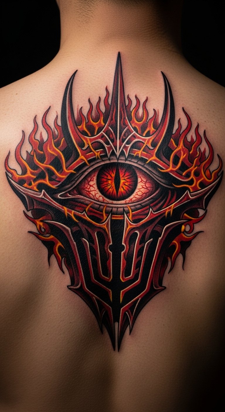 The Eye of Sauron adds a dark edge, ideal for your back. It captures vigilance and power. Sketch flames on paper first with free supplies. Go for bold outlines to save on complex work. Find deals at studios during events. DIY tip: Use phone apps to edit designs before going pro. This tattoo reflects inner strength and pairs with other dark themes. Cover it with clothing for work, and clean with household items.